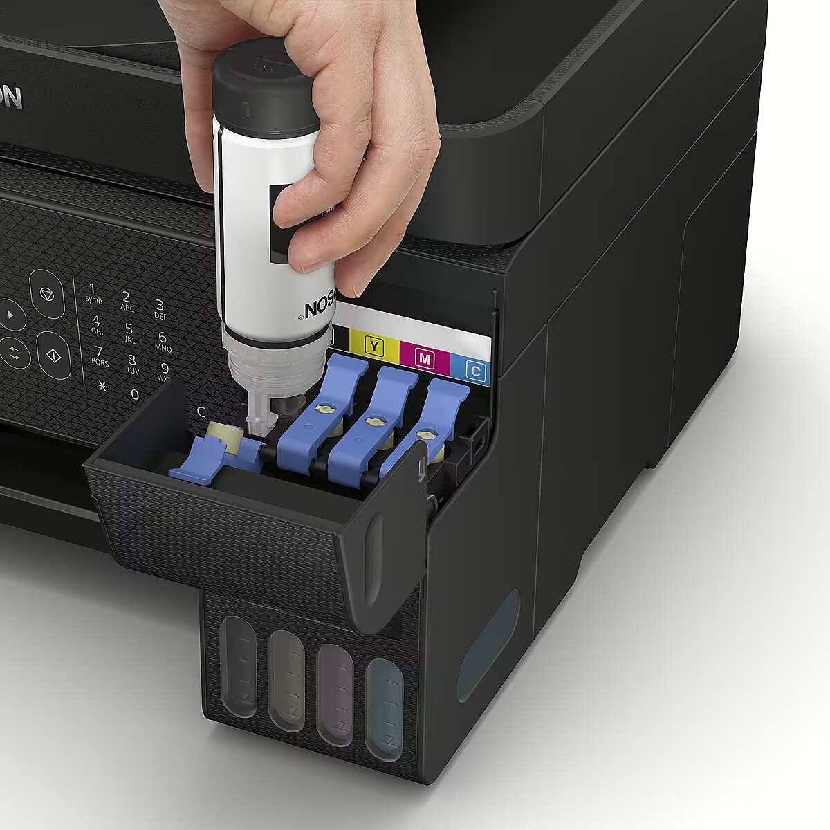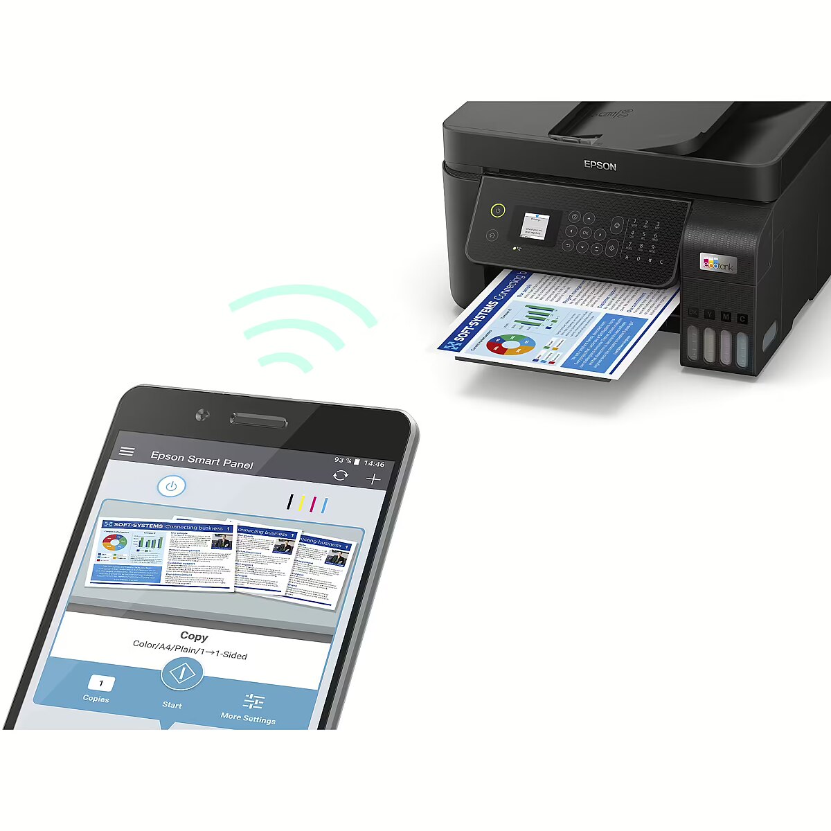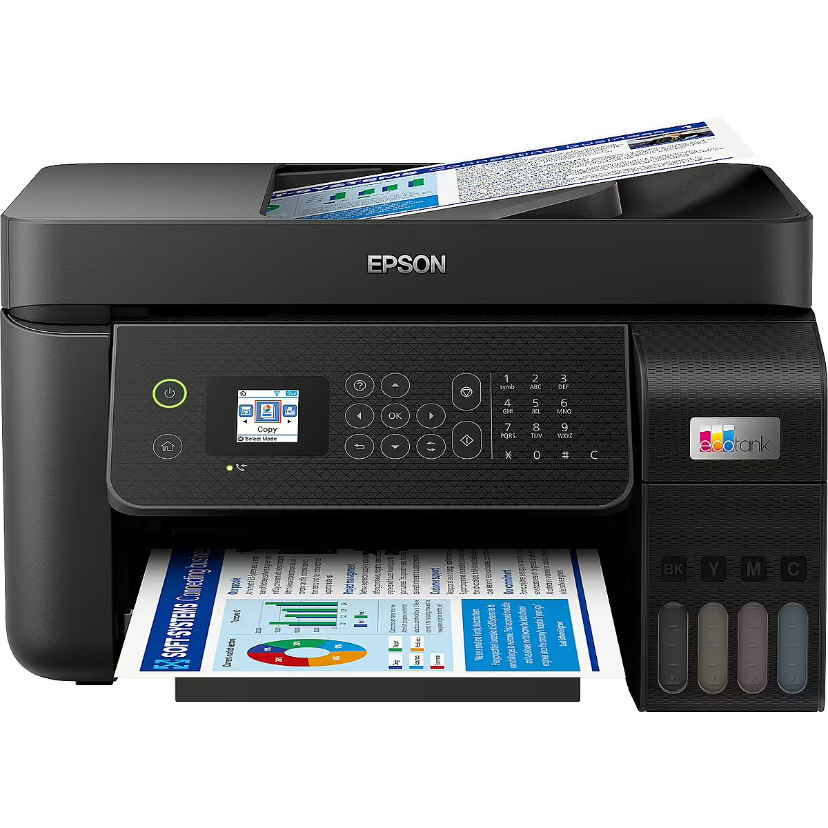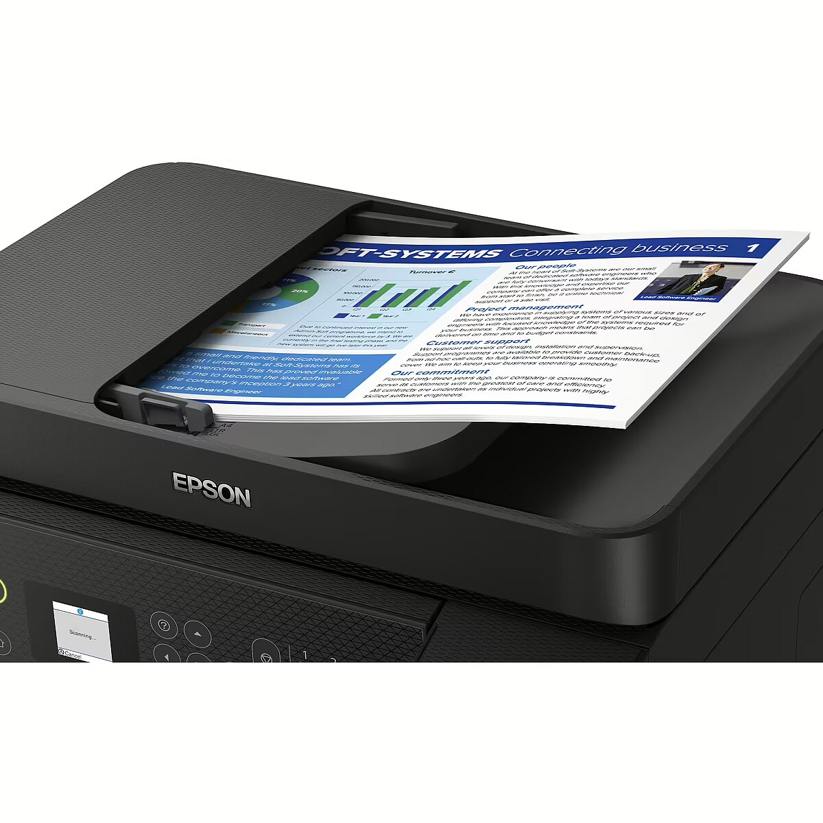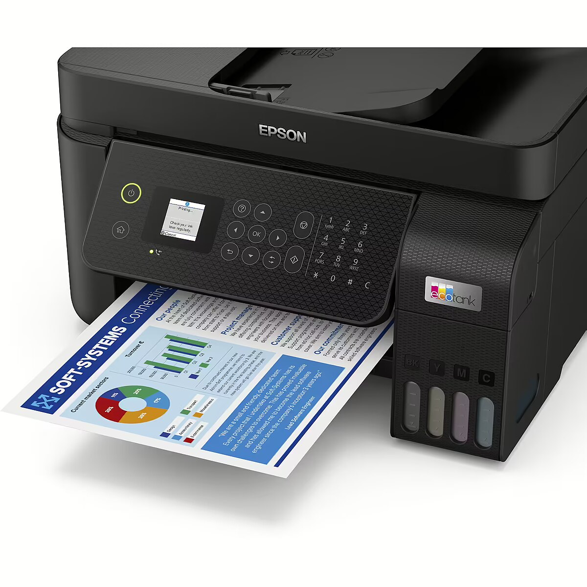 LongDesc - Say goodbye to cartridgesEnjoy business quality and mobile printing at an ultra-low cost with this multifunction inkjet with fax, perfect for busy homes and small officesSave up to 90% on printing costs1 with Epson’s cartridge-free EcoTank printers. Supplied with high yield ink bottles, the integrated ink tanks are easy to fill thanks to the specially engineered ink bottles. With no cartridges to replace, flexible connectivity features and fax, this is the perfect printer for anyone looking for high-quality prints at an incredibly low cost per page.Say goodbye to cartridgesEcoTank provides hassle-free printing for homes and small offices - the ultra-high capacity ink tanks allow mess-free refills and the key-lock bottles are designed so only the correct colour can be inserted.Keep on savingThis economical printer saves you up to 90% on printing costs1 and comes with up to 3 years' worth of ink included in the box2. One set of ink bottles delivers up to 4,500 pages in black and 7,500 in colour3, equivalent of up to 72 cartridges worth of ink!Epson Smart Panel appThis app enables you to control your printer from your smart device4. You can print, copy and scan documents and photos, set up, monitor and troubleshoot your printer, all from your phone or tablet.Packed with featuresFeaturing a 3.7cm colour LCD screen, 30-page automatic document feeder and fax, 100-sheet rear paper tray and print speeds of up to 10 pages per minute5, you can speed through a variety of tasks with ease.Modern flexibilityFeaturing a compact design and full Wi-Fi, Wi-Fi Direct and Ethernet connectivity, you can easily integrate this printer with your existing home or office set-up and print from mobiles, tablets and laptops4.Heat-Free TechnologyWith Micro Piezo Heat-Free Technology you can enjoy reduced energy consumption and less need for replacement parts. The printhead also comes pre-installed so setting up your printer is hassle-free.