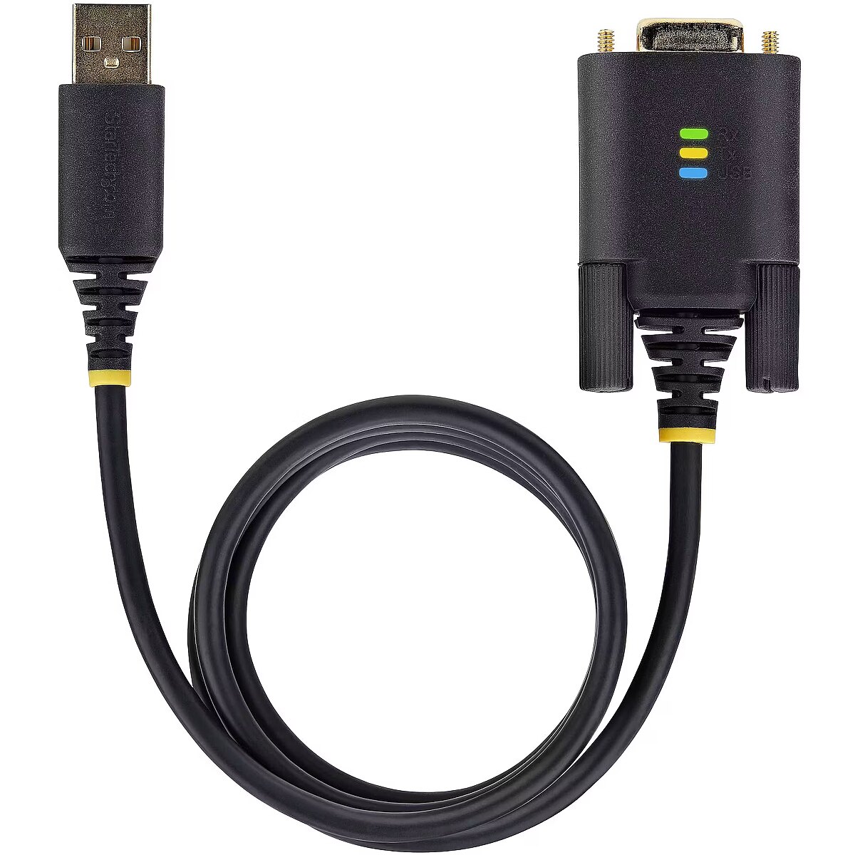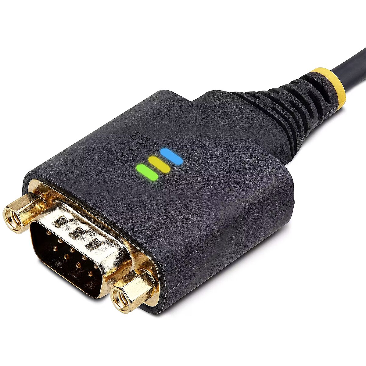 LongDesc - Add an RS232 serial port to a laptop or desktop, using an available USB-A portAdd RS-232 serial communication support to USB-A enabled Data Terminal Equipment (DTE - e.g., desktop or laptop), using this 3.3ft (1m) straight through USB to Serial Adapter Cable.Serial Port ExpansionThe USB Serial Adapter adds an RS-232 serial DB/DE-9 (male) connector to a desktop or laptop via a USB Type-A port. Secure the adapter to a serial device, using pre-installed and removable slotted D-Sub thumbscrews or install the included DB-9 Nuts for compatibility with other serial peripheral devices or cables.LED IndicatorsData transmission and reception LED indicators on the adapter provide real-time monitoring of port activity. The USB LED indicates when the adapter has successfully enumerated on the desktop or laptop. All the LEDs aid with diagnostics and troubleshooting.Seamless ConnectivityThe adapter is compatible with Windows, macOS, ChromeOS, and Linux. Drivers automatically install to Windows 7 and newer versions, macOS 10.15 and above, and Linux. The USB to RS-232 adapter features COM retention, which automatically reassigns the COM port value if the cable is disconnected and reconnected, or if the system is rebooted.Built To LastThe rugged TPE construction and Level-4 ESD protection (15kV air and 8kV contact) enhance the reliability and longevity of the USB to Serial Adapter. Copper shielding minimizes Electromagnetic and Radio Frequency Interference (EMI and RFI). Gold-plated connectors enhance signal conductivity.The StarTech.com Advantage