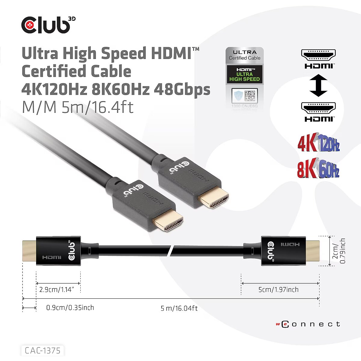 Vendor Homepage - www.club-3d.com/en/detail/2563/ultra_high_speed_hdmit_certified_cable_4k120hz_8k60hz_48gbps_m-m_5m-16.4ft/