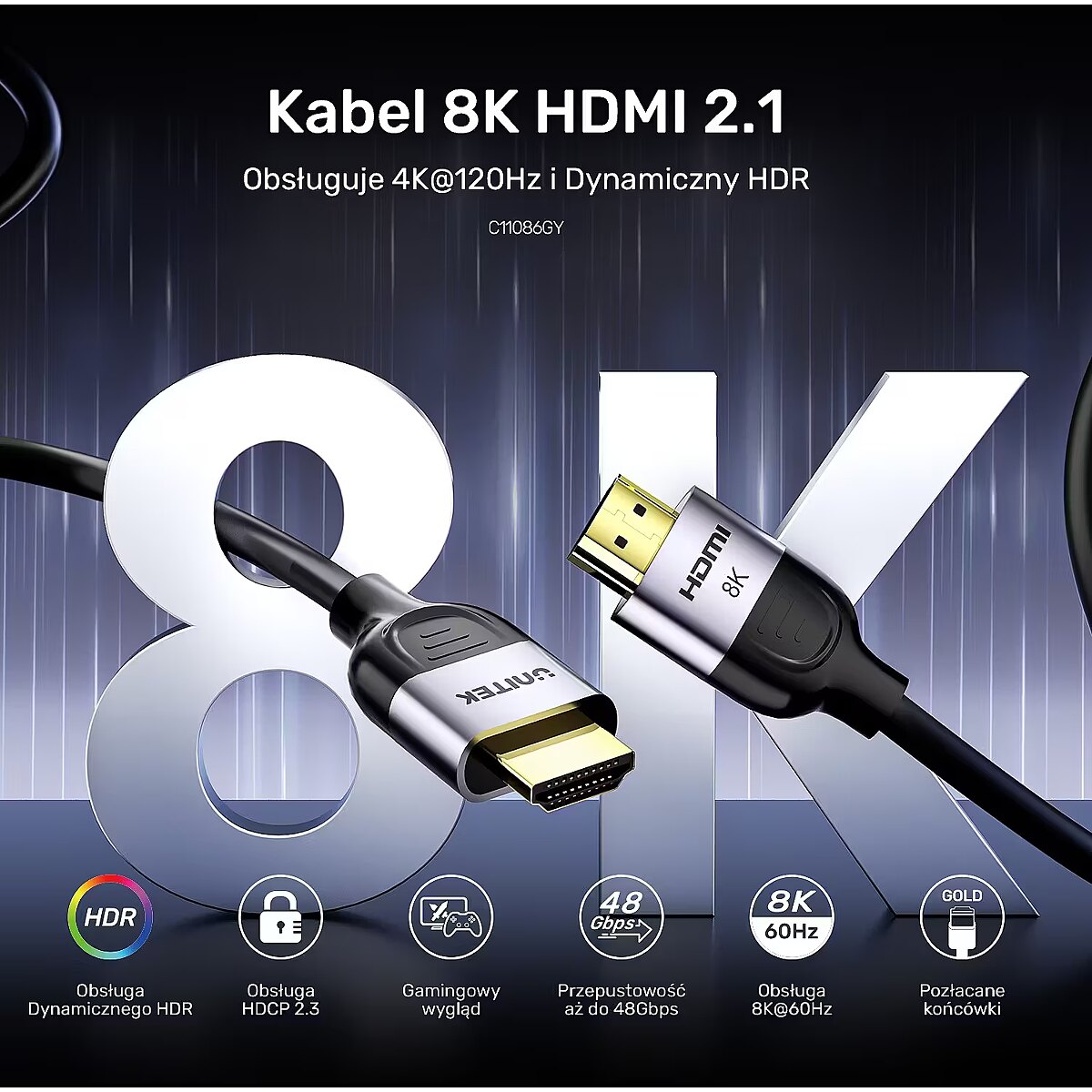 Accessories included - Kabel HDMI 2.1 Unitek C11086GY01-5M