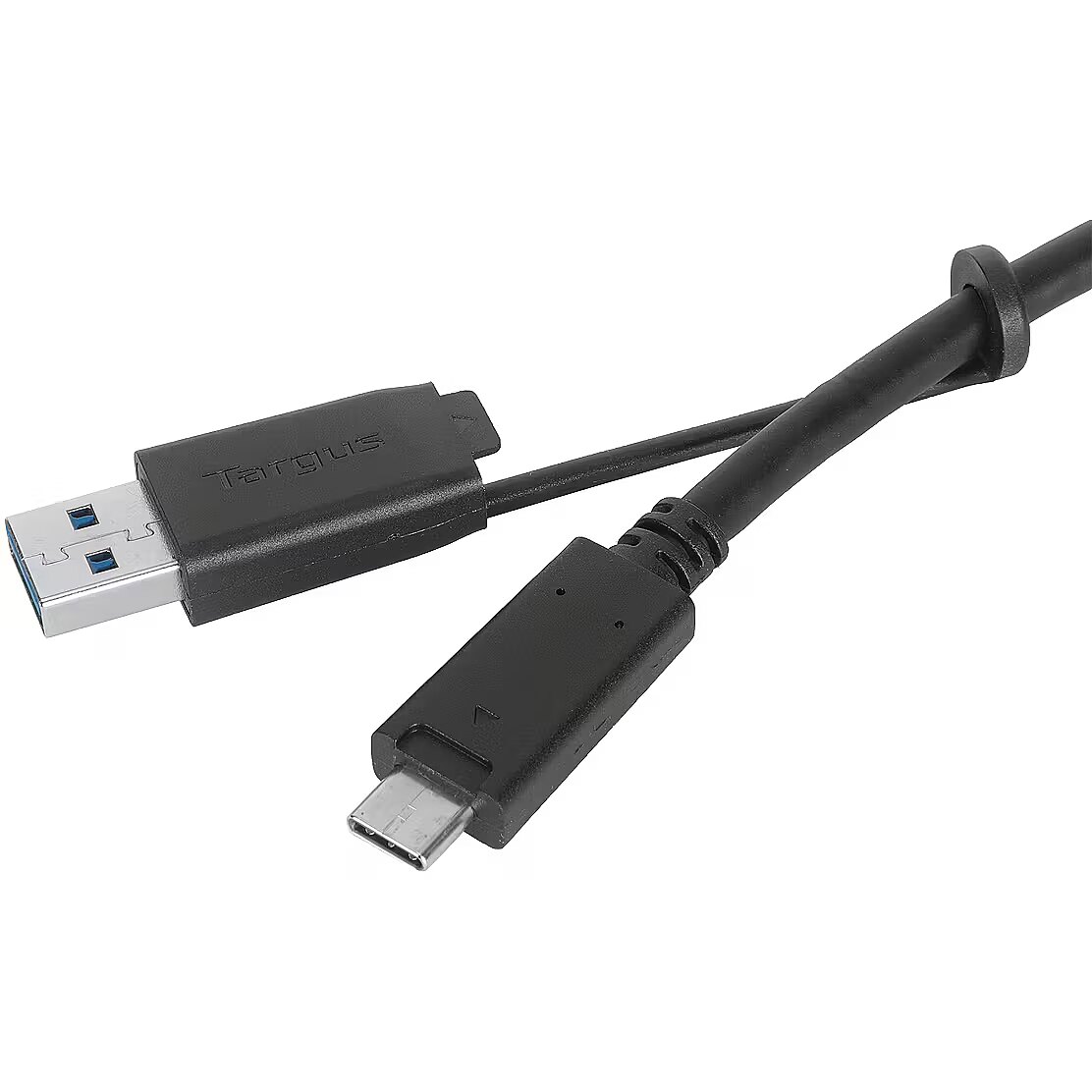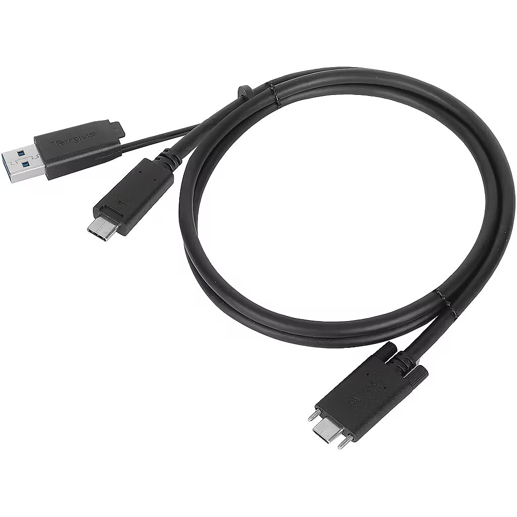LongDesc - Make connecting to a Targus dock and transferring data a breeze with this 1.8M USB-C Male with Screw to USB-C Male Cable with USB-A Tether. Perfect for mixed device environments, the USB-C cable has a tethered USB-A connector, making it compatible with both USB-A and USB-C devices. Compact and lightweight, it easily fits in your go-to backpack or briefcase.