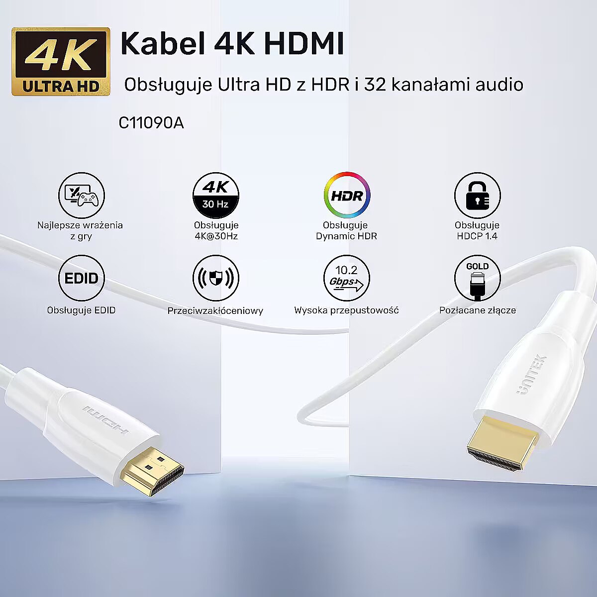 ShortDescription - Unitek Kabel HDMI 2.0 4K biały 7.5m
