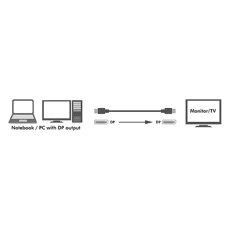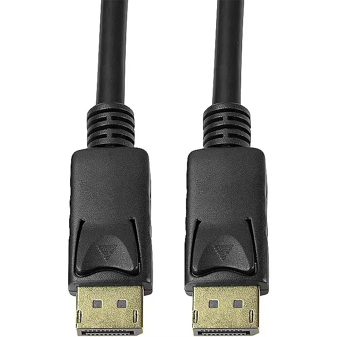 Technical details > Other features - DisplayPort to DisplayPort Cable; Connector 1: DisplayPort 20-pin male; Connector 2: DisplayPort 20-pin male; Transfer of audio and video signals; With locking latches and gold plated connectors; Supports 8K / 60 Hz and 4K / 120 Hz; Bandwidth: Up to 32.4 Gbps Color: Black; Length: 1 m.
