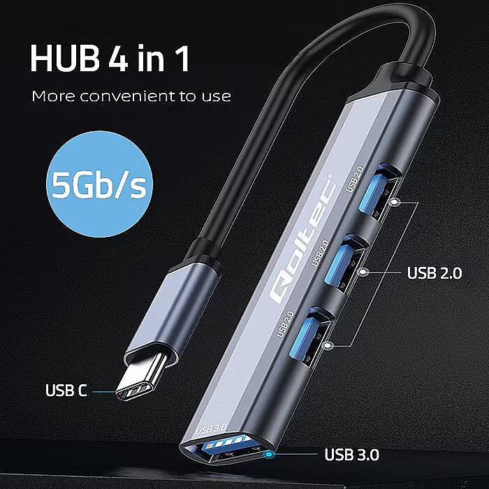 Are you looking for a solution to extend the capabilities of your laptop or computer? The USB hub from Qoltec is dedicated to anyone who appreciates practical solutions that make it easier to organise work and use multiple devices at the same time. The lack of more USB ports on devices such as a laptop, for example, is a big problem. Right now, our device will improve and organise your workstation, you will gain the extra USB ports necessary to connect several devices at once.