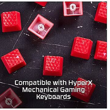 LongSummaryDescription - Rubber Keycaps - Gaming Accessory Kit - Red (US Layout). Product type: Keyboard cap, Device type: Keyboard, Brand compatibility: HP, Compatibility: HyperX Mechanical Keyboards, Cherry MX Steam Style keyboards, Material: Thermoplastic elastomer (TPE). Thickness: 1.4 mm. Product colour: Red