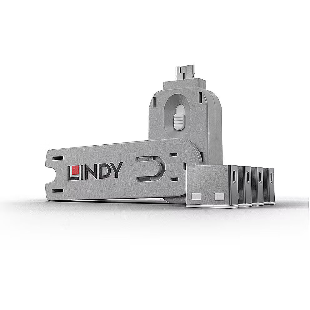 ShortSummaryDescription - Lindy USB Port Blocker - Pack of 4, Colour Code: White, Port blocker + key, USB Type-A, White, Acrylonitrile butadiene styrene (ABS), 5 pc(s), Polybag