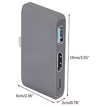 title_ru - RoGer RO-AD2 (3 in 1) USB-C Multiport Адаптер / USB 3.0 / HDMI / USB-C / Серый