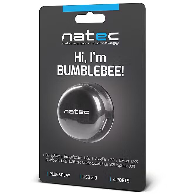 Description - The Natec Bumblebee USB Hub has 4 USB inputs. Now all of our devices can be connected to one HUB, thanks to which we save entries in the computer and we have free access to connected devices. Thanks to its shape, Bumblebee is perfect for any desk. The aesthetics of performance is at a very high level. Certainly it will look good on every desk. Natec Bumblebee has a retractable cord, becoming our faithful companion on the go. It does not take up much space in our bag, and when the cable is unrolled it is ready to be connected.