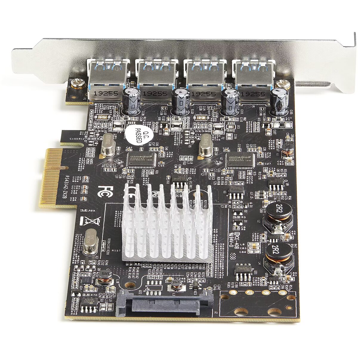 ShortSummaryDescription - StarTech.com 4-Port USB PCIe Card - 10Gbps USB 3.1/3.2 Gen 2 Type-A PCI Express Expansion Card with 2 Controllers - 4x USB-A - USB PCIe Add-On Adapter Card - Windows/Mac/Linux, PCIe, USB 3.2 Gen 2 (3.1 Gen 2), PCIe 3.0, SATA 15-pin, Black, Metallic, 40000 h