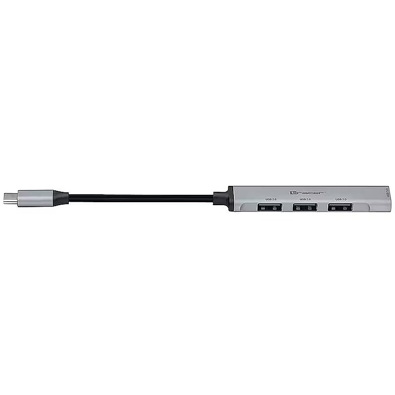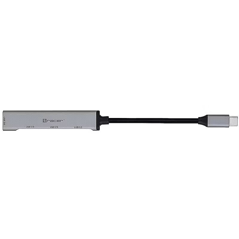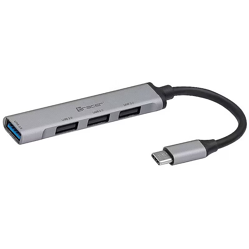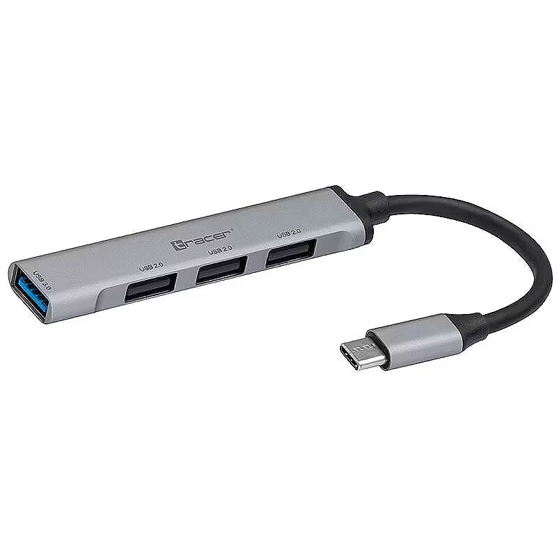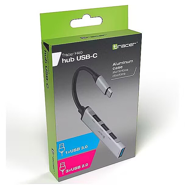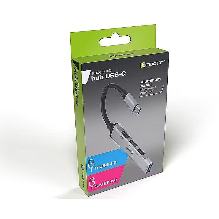 Description - TRACER H40 USB HUB with USB-C connector Have you ever encountered a computer with few USB ports? Or maybe your laptop is equipped with a small number of USB ports? Tracer USB HUB will solve your problem and provide additional USB ports. Choose HUB Tracer H40 to enjoy fast and stable data transfer. Connection to a computer via the USB-C 3.0 port. 3x USB 2.0 port. 1x USB 3.0 port. Durable aluminum housing. Signal diode. No need to install drivers. Expand the capabilities of your computer Modern laptops on the market have a small number of USB ports to which peripheral devices can be connected. Usually the problem is the need to use several additional accessories at the same time. HUB TRACER will help you get rid of this problem. Four USB ports will allow you to connect additional devices. And thanks to USB 3.0 technology, you can transfer data at 10 times faster speeds than before. Plug it in and you're done HUB TRACER simply connect to the USB-C port and it is ready to work. No drivers or additional software are needed, the device is ready for operation immediately after connecting to the computer. HUB Tracer H40 is equipped with an LED that indicates the device status. A small gadget HUB TRACER is a small device that you can always have with you. Silver colors and aluminum casing make its design match most laptops available on the market. Made of high-quality materials, it guarantees long-term use.