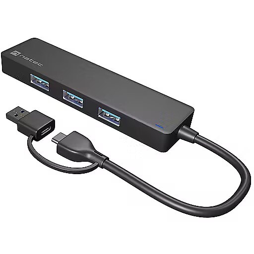 Are you looking for a compact and functional USB HUB that will allow you to use more accessories? Meet Natec Mayfly a USB HUB with up to 4 USB-A 3.0 ports and an adapter that will connect it to both USB-C and the classic Type A connector. Small size, high data transfer speed and readiness to operate without unnecessary drivers this is Natec Mayfly.