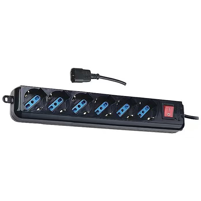 Pikk tootenimi - Pistikupesa 6 pesaga, must, VDE-pistikuga