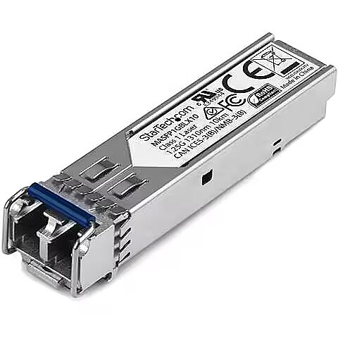 LongDesc - 1000 Mbps (1 Gbps) | Single Mode Fiber | LC | 10 km (6.2 mi) | Lifetime WarrantyThe MASFP1GBLX10 is a Cisco Meraki MA-SFP-1GB-LX10 compatible fiber transceiver module that has been designed, programmed and tested to work with Cisco Meraki™ brand switches and routers. It delivers dependable 1GbE (100Mbps) connectivity over fiber cable, for 1000BASE-LX compliant networks, with a maximum distance of up to 10 km (6.2 mi).Technical Specifications:• Wavelength: 1310nm• Maximum Data Transfer Rate: 1.25 Gbps• Type: Single Mode Fiber• Connection Type: LC Connector• Maximum Transfer Distance: 10 km (6.2 mi)• MTBF: 3,092,408 hours• Power Consumption: Less than 1 Watt• Digital Diagnostics Monitoring (DDM): YesThis SFP fiber module is hot-swappable, making upgrades and replacements seamless by minimizing network disruptions.StarTech.com SFPsAll StarTech.com SFP & SFP+ transceiver modules are backed by a lifetime warranty and free lifetime multilingual technical support. StarTech.com offers a wide variety of SFP modules and direct-attach SFP cables, providing the convenience and reliability you need to ensure dependable network performance.The StarTech.com Advantage