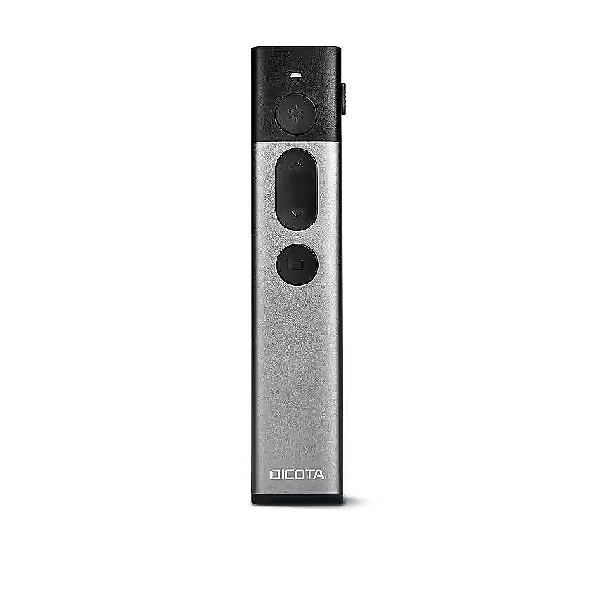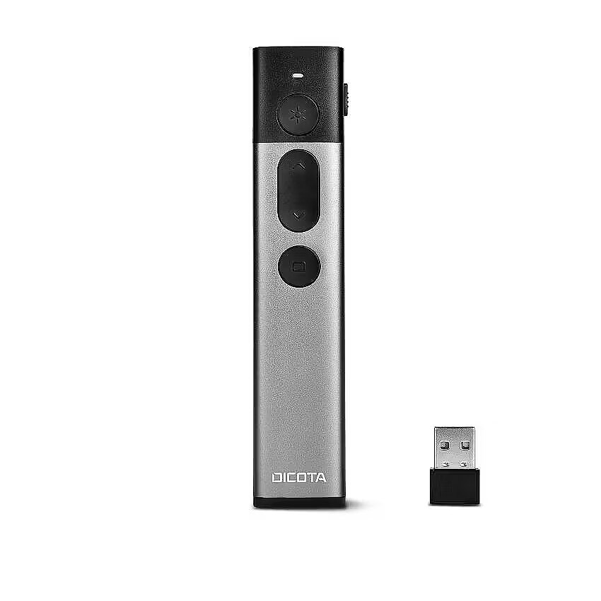 Kirjeldus - Traadita laser-esitlusseade Sujuvaks esitluseks See toode sisaldab esimese klassi laseri. Roheline laser parandab laser-osuti nähtavust paljudel pindadel. Eriti õhuke korpus võimaldab mugavat esitlemist ja hoiustamist. Aku vähendab hoolduskulusid ja patareide hulka. Keskenduge sisule, mitte tehnoloogiale – intuitiivne juhtimine hõlbustab navigeerimist. Integreeritud laseriga saab rõhutada olulisi punkte. Draiveri installimine ei ole vajalik, piisab ühendamisest ja USB-vastuvõtja ühendub automaatselt teie sülearvutiga. 2,4 GHz traadita ühendus USB-vastuvõtjaga Sisseehitatud aku Roheline laser tagab laserpunkti parema nähtavuse Ulatus kuni 30 meetrit Navigatsiooninupud (edasi, tagasi, must ekraan)