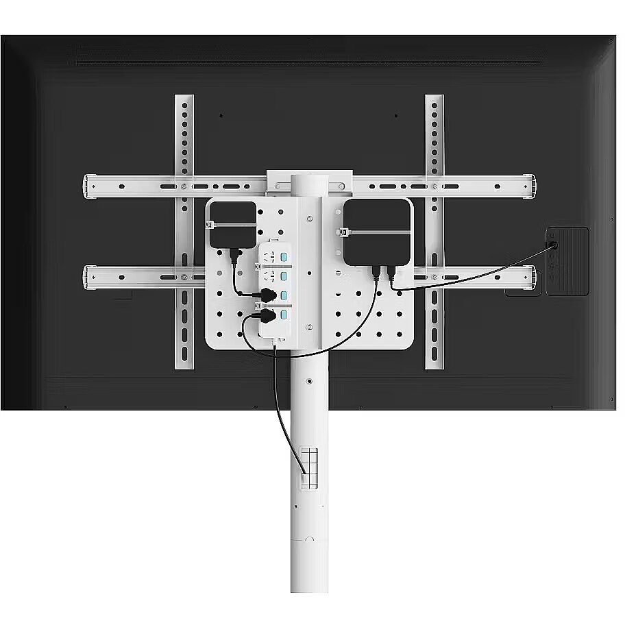 LongDesc - This mobile floor stand for large TVs is a great compromise between durability, flexibility and style for your entertainment needs. The column can be adjusted to four different heights, thus allowing you to obtain the desired view of the screen. Featuring a perforated panel with integrated cable management, it ensures tidy access to the device and a clean appearance.Additionally, the trolley features five swivel casters, which ensure seamless mobility and boast a sleek, streamlined design.
