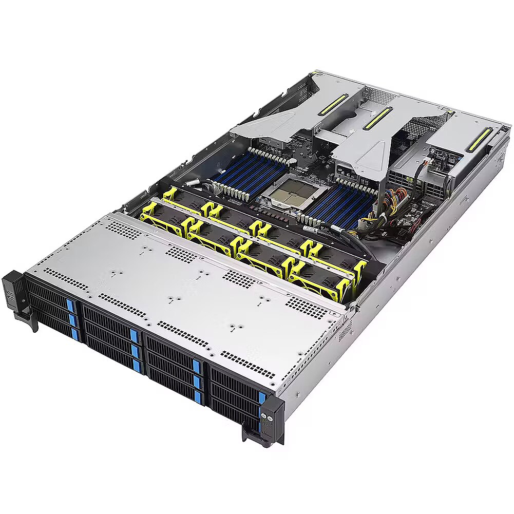 Asus Platforma Asus Rack (2U) RS521A-E12-RS12U AMD Epyc 9005/9004 (12x NVMe/SATA HS, 2xM.2, 2x1Gbe, IPMI, 1+1 1600W)