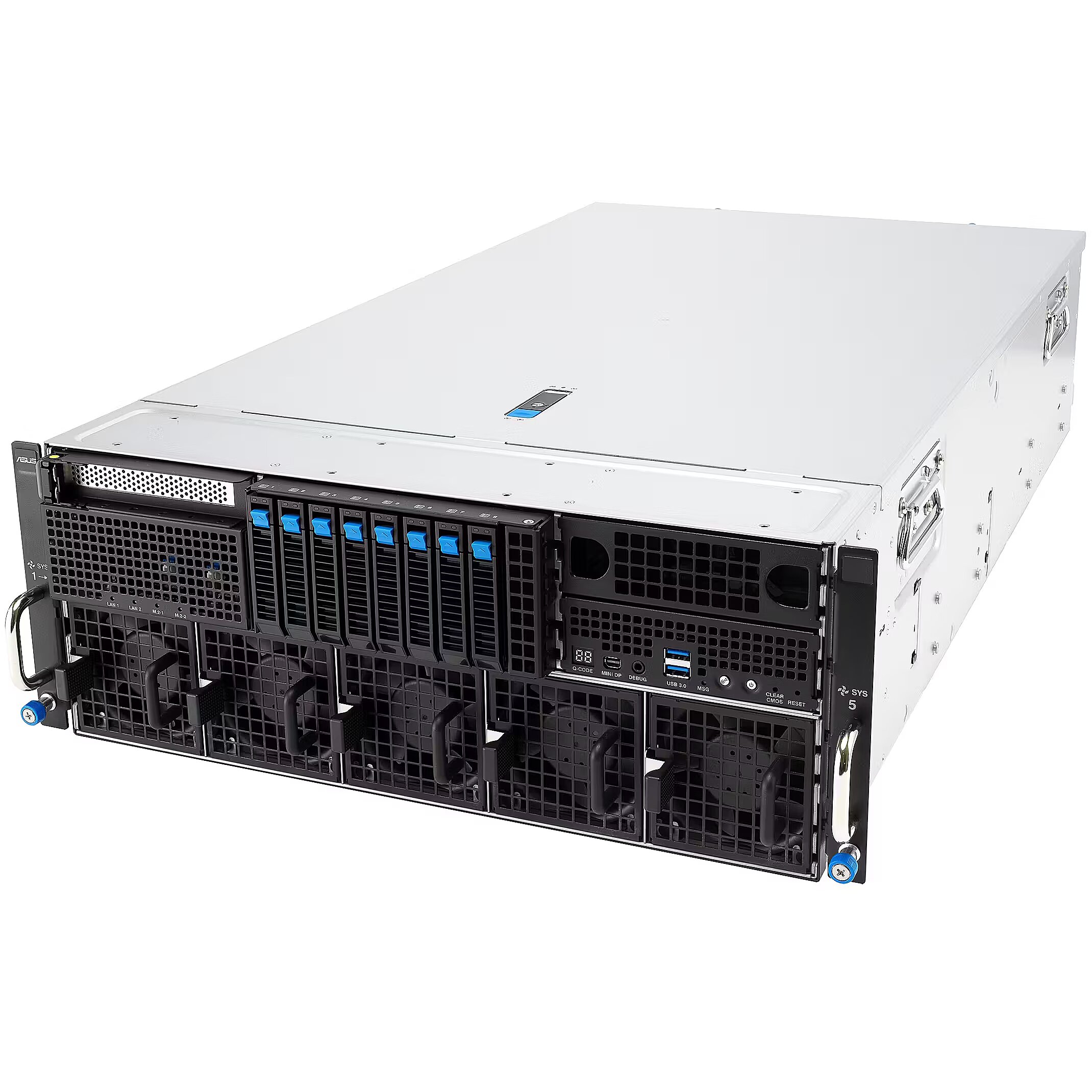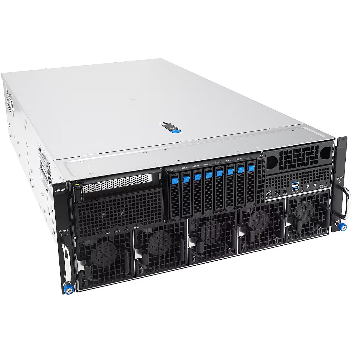LongSummaryDescription - ASUS ESC8000A-E13P. Processor socket: LGA 6096, Processor manufacturer: AMD, Processor family: AMD EPYC. Supported memory types: DDR5-SDRAM, Supported DIMM module capacities: 16GB, 32GB, 64GB, 128GB, Maximum internal memory: 3 TB. Storage drive sizes supported: 2.5,M.2, Supported storage drive types: HDD & SSD. Ethernet interface type: 10 Gigabit Ethernet, Ethernet LAN data rates: 10000 Mbit/s, LAN controller: Intel X710-AT2. Chassis type: Rack (4U), Product colour: Silver, Black, Certification: BSMI, CB, CE, FCC(Class A), RCM
