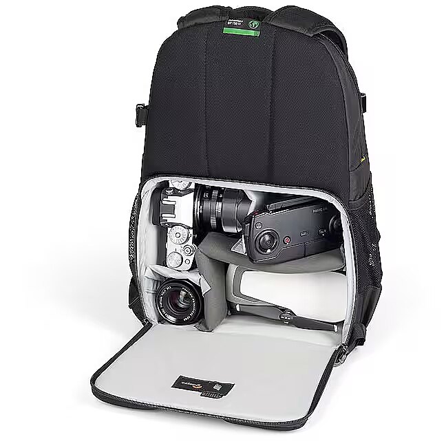 description_en - Made of 82% recycled and solution-dyed fabrics Fits crop-sensor mirrorless camera with lens, plus 2-3 lenses Back access to camera compartment with flexible dividers Double side pockets for water bottle and compact tripod Roomy, top-loading compartment for personal items Lowepro’s popular Adventura collection has been updated with Lowepro Green line, which means it’s now made of recycled and solution dyed fabric! The brand-new Adventura III is always ready for wherever your next adventure takes you, delivering protection in a compact package. This camera backpack is perfectly designed to fit your crop-sensor mirrorless cameras, such as the Fujifilm XT200, the Canon M50 MII, the EOS R10 or the Nikon Z50, with lenses attached as well as 2 to 3 small lenses or a charger and battery. Or a foldable drone, such as the Mavic Air. Never leave anything you need for a great shot, as this backpack also has room for a 10" tablet, the Gorillapod 3K or Befree Advanced and any extras you may need, including but not limited to jackets, snacks, sunglasses and water bottles. The BP 150 includes 82% recycled and solution-dyed fabrics, to reduce water waste and negative impact on the environment. This percentage is made up of 59% recycled fabrics – Including all fabrics, webbings, bindings, zipper tape, cords and meshes, and 23% solution-dyed fabrics used to build each bag. The BP 150 delivers rugged protection for camera and lenses, with back access to the camera compartment, and flexible dividers. The roomy, top-loading compartment for personal items, with a padded 10’’ tablet pocket, and the spacious front pocket for everyday essentials allow you to organise and carry all you need. The double-side pockets can hold a water bottle and/or a compact tripod.