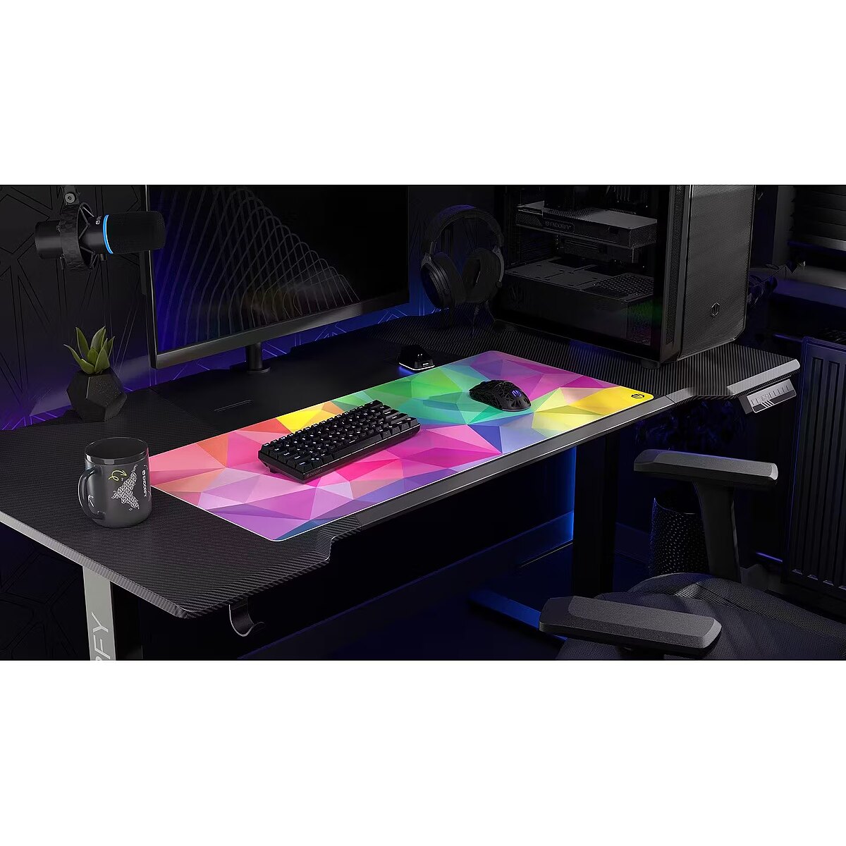 Description - Crystal Spectrum XL Water-resistant fabric with a multicolor, crystal-like graphic pattern, detailed hem with a print, and a non-slip underside – heverything you need for a high quality mousepad designed for precise and dynamic movements.Crystal Spectrum XL pad brings a touch of style to your desk. 900 x 400 mm High quality black rubber layer Colored hem ensures durability of edges Moisture resistant