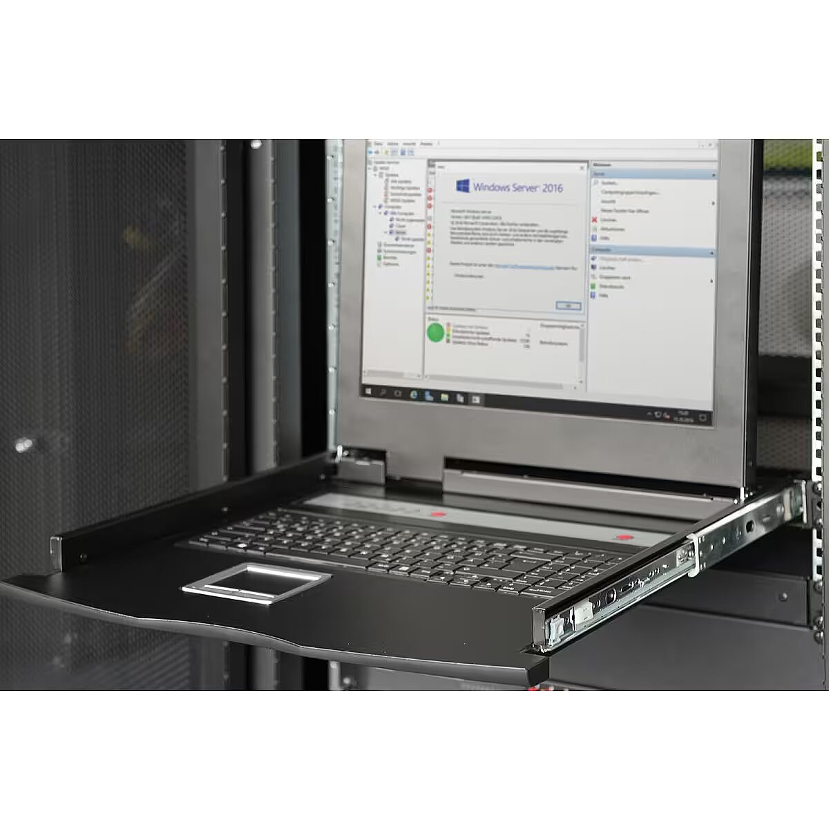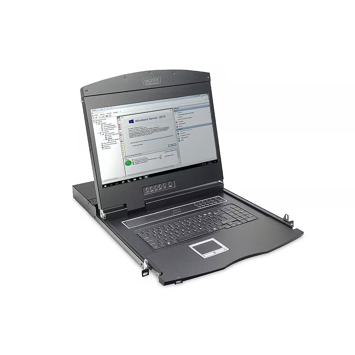 Description - Modular console with TFT 17 "TFT screen (43.2 cm) 8-port KVM switch & touchpad, black keyboard The DIGITUS brand console, thanks to its modular design, provides many different possibilities of individual configuration, so that it is possible to adapt to the scope of application of the console.