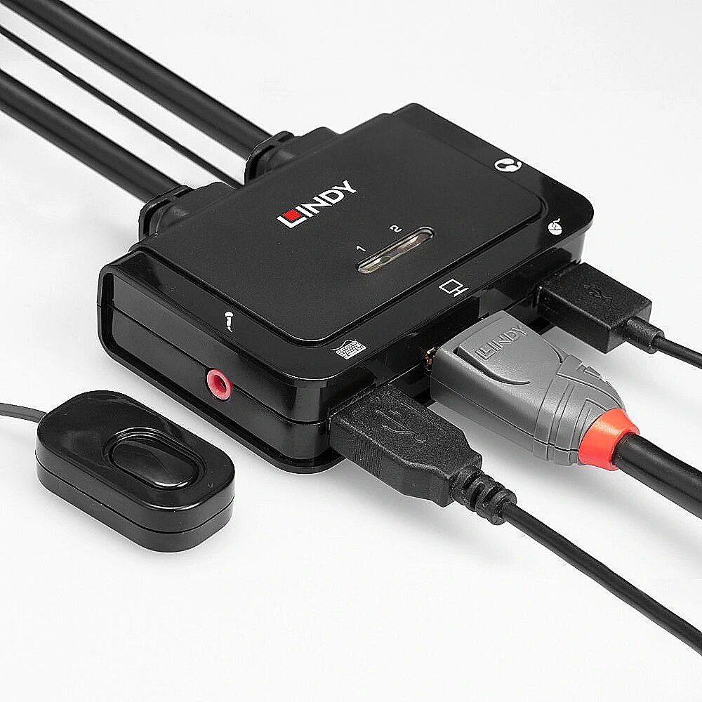 Title - Lindy 2 Port DisplayPort 1.2, USB 2.0 and Audio Cable KVM Switch