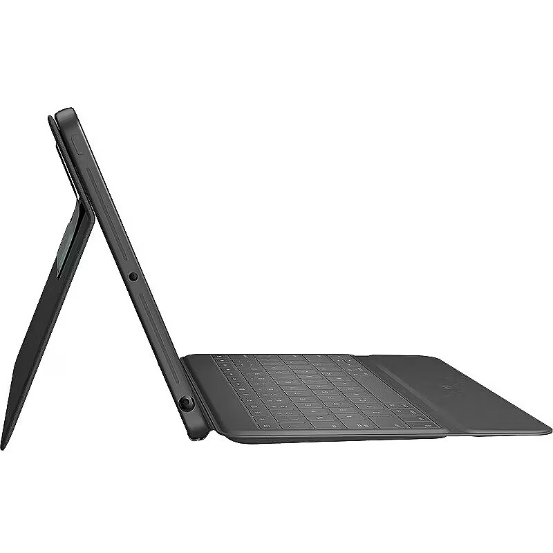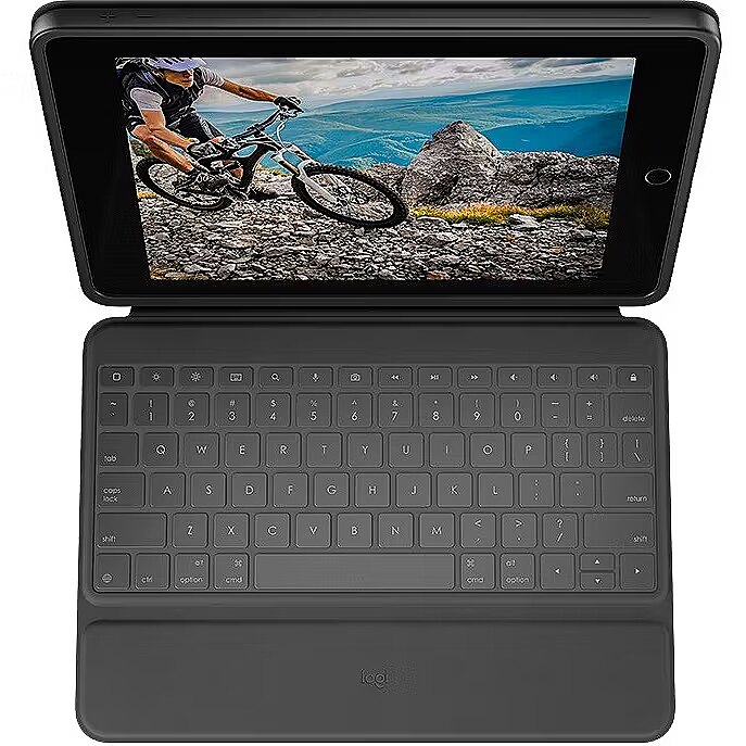Description - Rugged Folio for iPad (7th and 8th generation) is a slim keyboard case with drop protection that exceeds military standard tests. It uses Smart Connector technology so no pairing or charging is required. High performance spill and dirt-resistant sealed keys make this the perfect tool for on-the-go work. Enjoy a full-size keyboard with convenient iPadOS shortcut keys, front and back protection for your iPad, and a convenient spot to stow Logitech Crayon or Apple Pencil (1st gen). Rugged Folio is flexible enough for any environment or task. Type Mode: Dock the keyboard upright and pull out the kickstand to type out notes or emails. Viewing Mode: Fold back the keyboard and pull out the kickstand to watch movies and TV shows. Sketch Mode: Fully extend the kickstand back for the perfect angle to take notes or draw with Logitech Crayon. Read Mode: Tuck the kickstand in and fold the keyboard back to read books, articles, and more. Flexible kickstand offers 40° of tilt so you can always find the right angle for the task at hand. Sturdy mechanical hinges ensures the kickstand stays firmly in place and does not collapse, even with strong tapping.