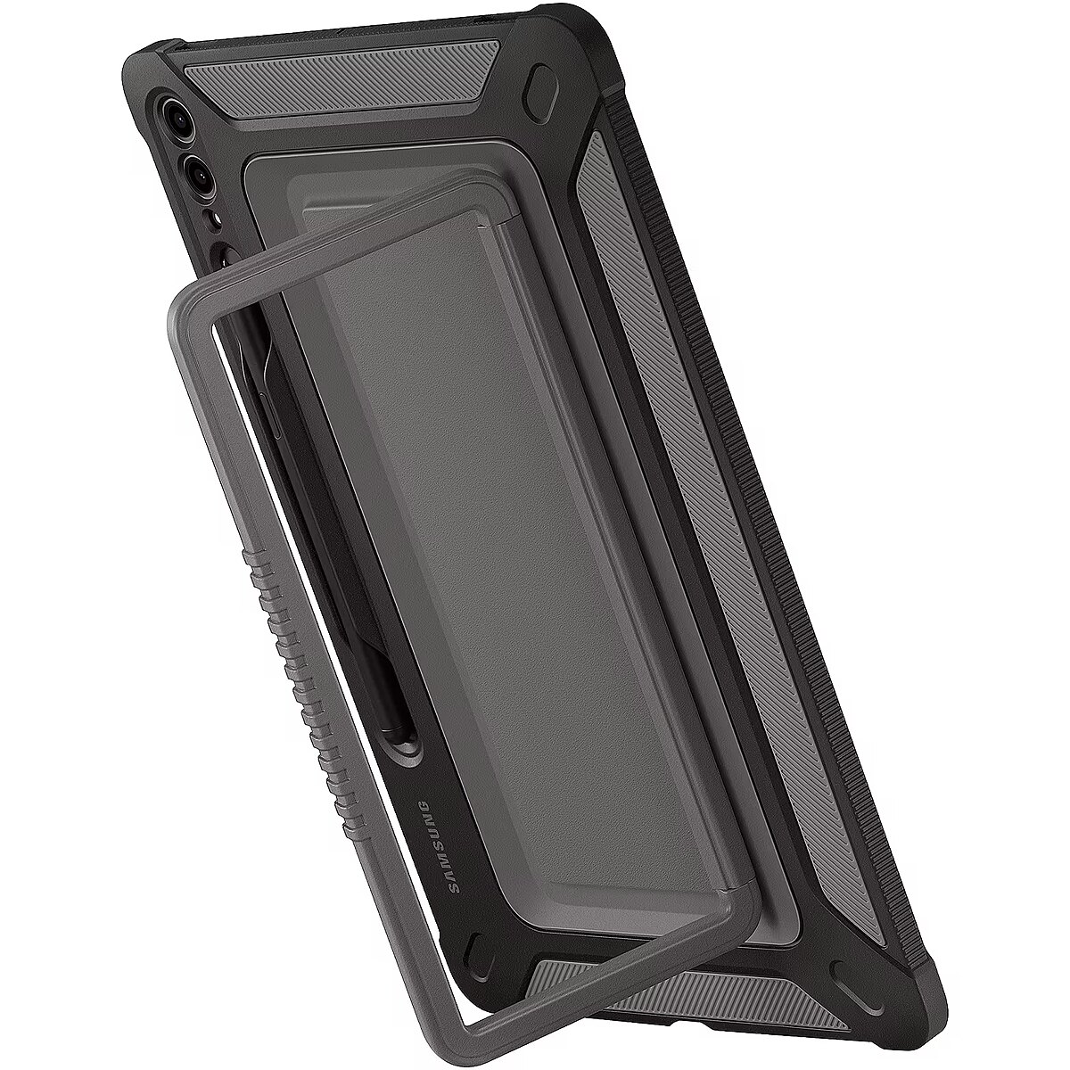 LongDesc - Rugged and reliableCarry your tablet outdoors with confidence. The rugged cover is built with military-grade (MIL-STD 810G-516.7) toughness to protect your tablet from minor drops and bumps when you are on the go.Stable stand, comfortable gripWith the built-in kickstand on the back of the case, you can conveniently view your device in Landscape mode. It also works as a grip for carrying, ensuring that your tablet stays in your hand while you are on the go.Keep your S Pen secure and accessibleThe embedded S Pen holder is a handy addition that lets you keep your S Pen close by and easily accessible.
