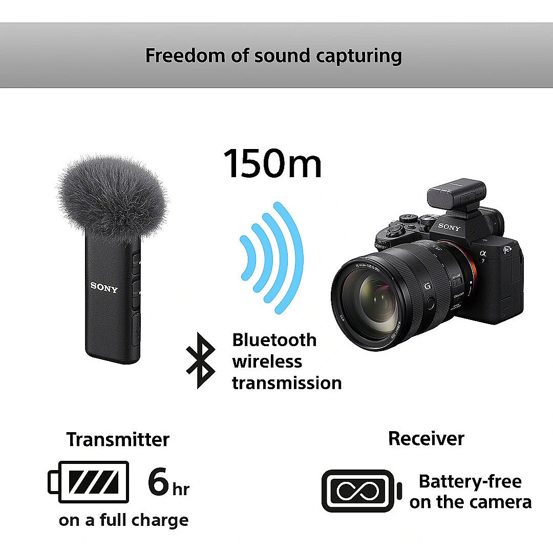 LongDesc - Single-channel wireless microphone for high-quality digital recordingThe ECM-W3S comprises a microphone-transmitter featuring high signal-to-noise (S/N) ratio microphone units, and a single-channel receiver. The transmitter and receiver process audio digitally and transmit it wirelessly, allowing the capture and recording of one speaker's voice with superb clarity and low noise.Digital sound recording with superb qualityHigh-quality digital sound recordingHigh signal-to-noise ratio (S/N) microphone units are integrated into the microphone-transmitter, enabling clear voice recording with low noise.High-quality digital transmissionConnecting the single-channel receiver to a camera from Sony that supports the Multi Interface (MI) Shoe, such as one of the α™ series digital interchangeable-lens cameras or vlog cameras, allows the digital audio signal output from the receiver to be recorded directly by the camera body, enabling high-quality sound recording with minimal noise contamination.Noise-suppressing filter functionsA noise cut filter using digital signal processing to effectively remove noise, and a low cut filter that reduces noise in the low-frequency range, are provided on the microphone side. Less noise removal is needed post-production, making workflow more efficient.A wide variety of sound recording methodsMulti Interface (MI) Shoe compatibleThe receiver can be easily attached to a camera from Sony that supports the Multi Interface (MI) Shoe, such as one of the α™ series digital interchangeable-lens cameras or vlog cameras, without cables, allowing immediate sound acquisition and avoiding interference with the vari-angle LCD monitor even when it is opened horizontally for shooting. This allows a greater degree of freedom and mobility when shooting.The convenience of wirelessThe ECM-W3S comprises a microphone-transmitter and a single-channel receiver, allowing wireless sound capture of one speaker's voice. Communication is possible at up to 150 m in clear line-of-sight locations, with Bluetooth 5.3 (Bluetooth Low Energy) and LC3plus codecs providing low power consumption, low latency, and high sound quality. Power saving has also enabled a reduction in battery size.Safety and attenuator functionsA safety function is provided that allows simultaneous recording of two audio signals, one at normal volume and the other 20 dB lower, reducing the risk of clipping during loud recording. An attenuator function is also provided, allowing the recording level to be set to one of three values according to the audio volume.Microphone audio input/outputA 3.5 mm mini jack (monaural) is provided as an external microphone input terminal on the microphone side, and a 3.5 mm mini jack (stereo) on the receiver side serves as an audio output terminal. In addition to sound acquisition using a stereo-compatible lavalier microphone, output to devices not equipped with a Multi Interface (MI) Shoe is also possible.USB digital audio outputDigital audio (48 kHz / 24 bit) can be output from the receiver via USB cable to a smartphone or PC, or to a USB audio input compatible device for recording.Compactness, light weight and high reliabilityCompact and lightweight designBoth the microphone-transmitter and receiver have excellent mobility and portability, and are compact and lightweight enough not to get in the way when carrying or shooting. Designed to be dust- and moisture-resistant, they can be used outdoors without worry.Status notification functionsThe LINK lamp indicates the status of the communication channel between the microphone and receiver to prevent recording errors. The POWER lamps on both the microphone and receiver indicate battery level to prevent recording errors due to dead batteries.Battery Assist functionPower is supplied directly from the α™ series digital interchangeable-lens cameras or vlog cameras to the receiverCompact charging caseA small charging case is included in the package, allowing you to continue shooting without worrying about running out of battery power. The microphone-transmitter unit can operate continuously for approximately 6 hours on a full charge.Wind screen (included)The included wind screen can be used to reduce the wind noise that may occur when the microphone is impacted by strong wind or breath. This allows stable and clear recording of the speaker's voice, even when shooting outdoors.
