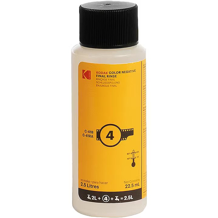 kirjeldus_ja - Kodak Color Negative C-41 filmiilmutuskeemia komplekt on kõik ühes lahendus värviliste filmide ja mustvalgete kromogeensete filmide ilmutamiseks. Komplekt sisaldab vedelaid kontsentraate, mida saab kergesti veega segada, et saada 2,5 liitrit töölahust. Keemiat saab kasutada ühekordse lahusena või täiendada sobivate Kodak Color Negative’i täitelahustega, mis on saadaval eraldi. Komplekt sisaldab: Ilmuti 1A, 1B, 1C Pleegiti 2A, 2B Kinniti 3 Final Rinse lahus 4