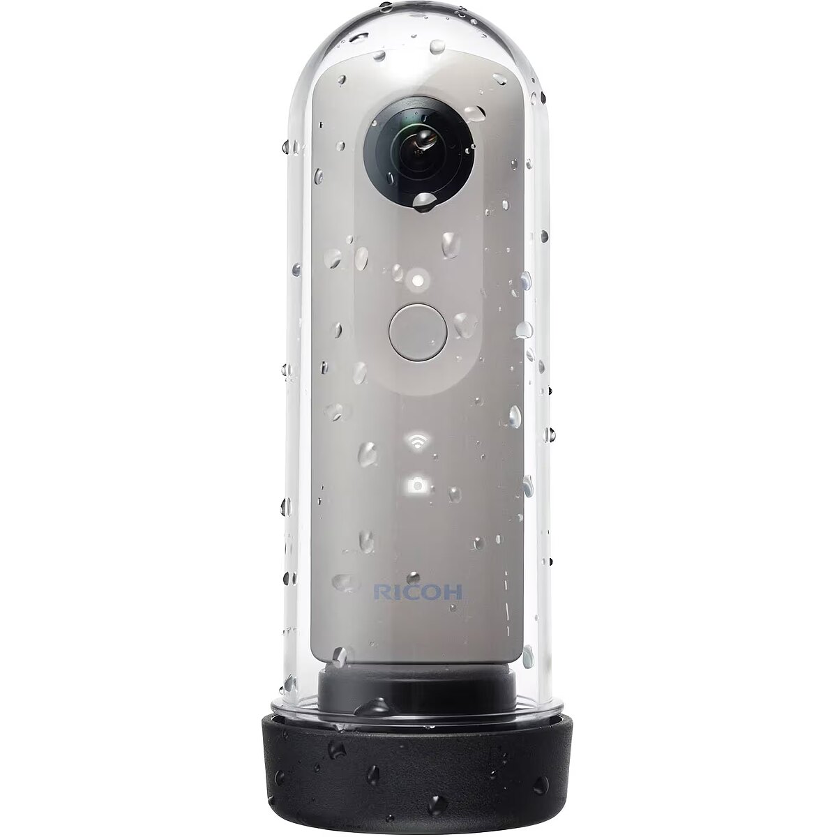 description_short_en - Water resistant case for Ricoh Theta Made from transparent polycarbonate 1/4 inch thread Equipped with a tripod screw