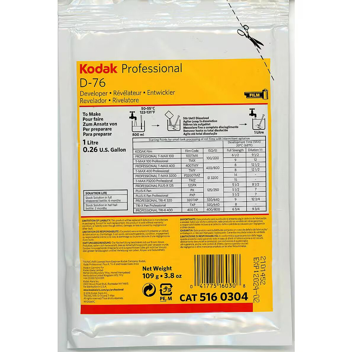 description_en - Kodak D-76 is a powder developer used for black and white film development. Produces high shadow detail, fine grain and normal contrast. One pack of powder 1 L of developer.