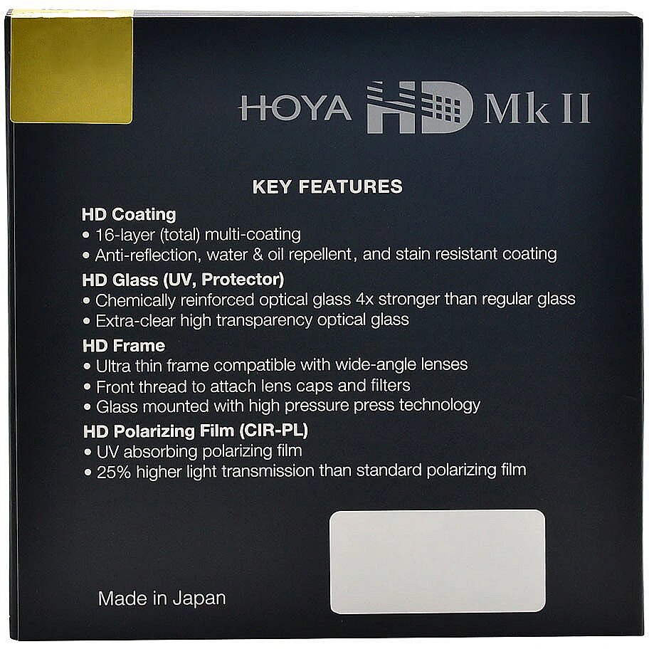 description_short_en - High quality circular polarizer filter Hoya HD Mk II series 16-layer anti-reflective multi-coating Slim matte black aluminium frame For lenses with 62 mm filter thread
