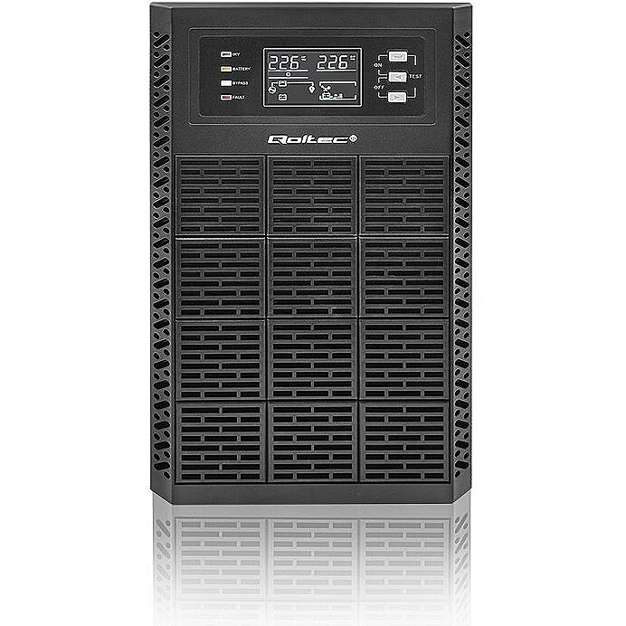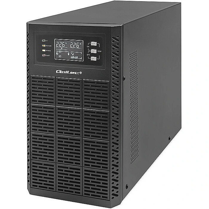 Qoltec UPS units offer stable interference-free pure sine wave power. It's complete protection for your devices, thanks to the double conversion, which first converts the AC of the mains supply to DC and then to AC, ensuring the highest level of power quality and protecting against potential mains disturbances such as voltage drops, power outages, surges and failures.