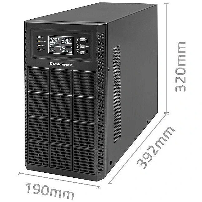 The Qoltec 3kVA 3000W UPS is the perfect solution for those who value business continuity and security for their IT infrastructure. This state-of-the-art on-line UPS provides an uninterrupted power supply, eliminating the risk of data loss and equipment failure due to power outages or voltage drops. With it, you can rest assured that your servers and equipment are running uninterrupted, ensuring stable operation and the security of stored information.