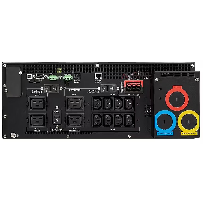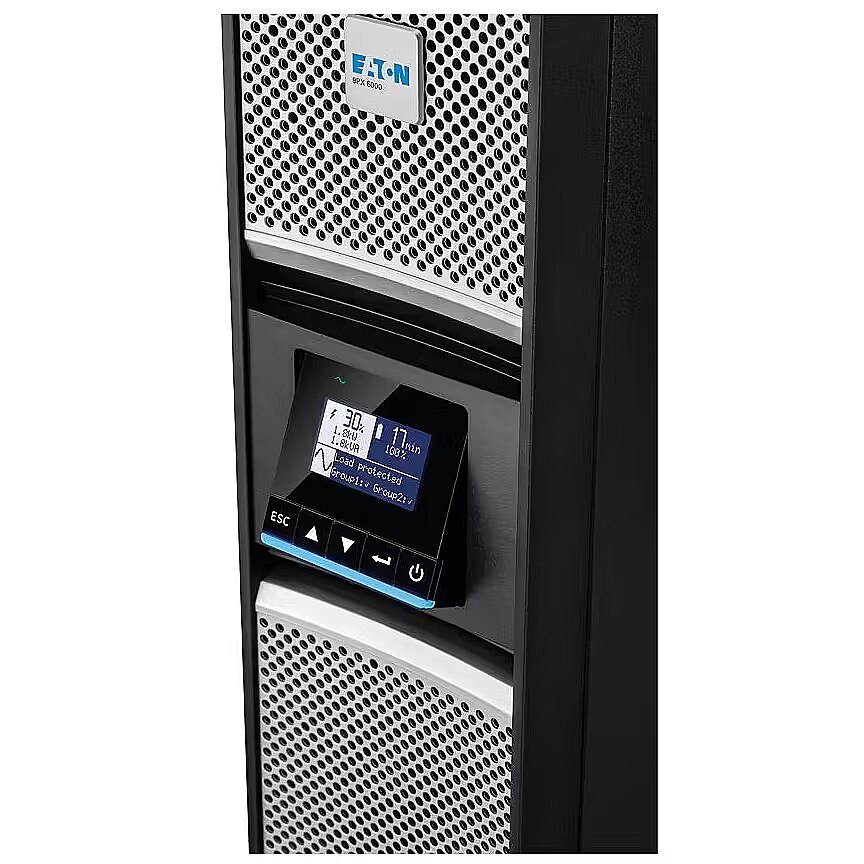 Special functions - Stale reguluje napięcie i częstotliwość Sprawność do 96,7%, certyfikat Energy Star, redukcja kosztów energii i chłodzenia Obudowa 4U Współczynnik mocy = 1 zapewnia wyższą moc czynną, co pozwala ochronić więcej urządzeń Wewnętrzny bypass zapewnia ciągłość pracy w przypadku awarii Graficzny wyświetlacz LCD Baterie wymienialne "na gorąco"
