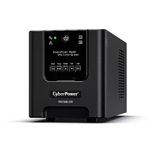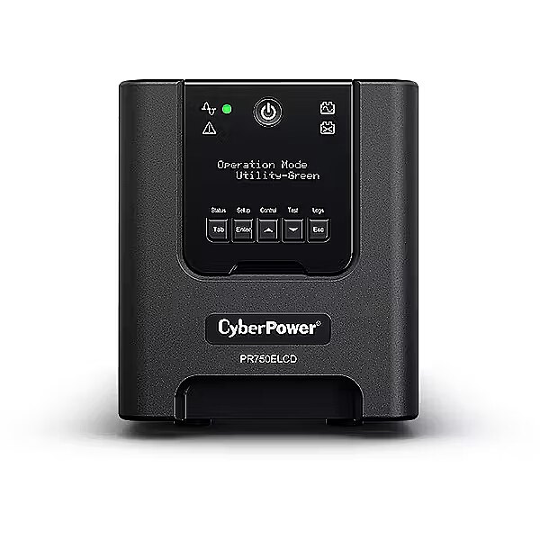 LongSummaryDescription - CyberPower PR750ELCD. UPS topology: Line-Interactive, Output power capacity: 0.75 kVA, Output power: 675 W. AC outlet types: C13 coupler, Power plug: C14 coupler, AC outlets quantity: 6 AC outlet(s). Battery technology: Sealed Lead Acid (VRLA), Typical backup time at full load: 2.5 min, Typical backup time at half load: 10.5 min. Form factor: Tower, Product colour: Black, Housing material: Metal. Certification: CE, EAC, RCM, RoHS