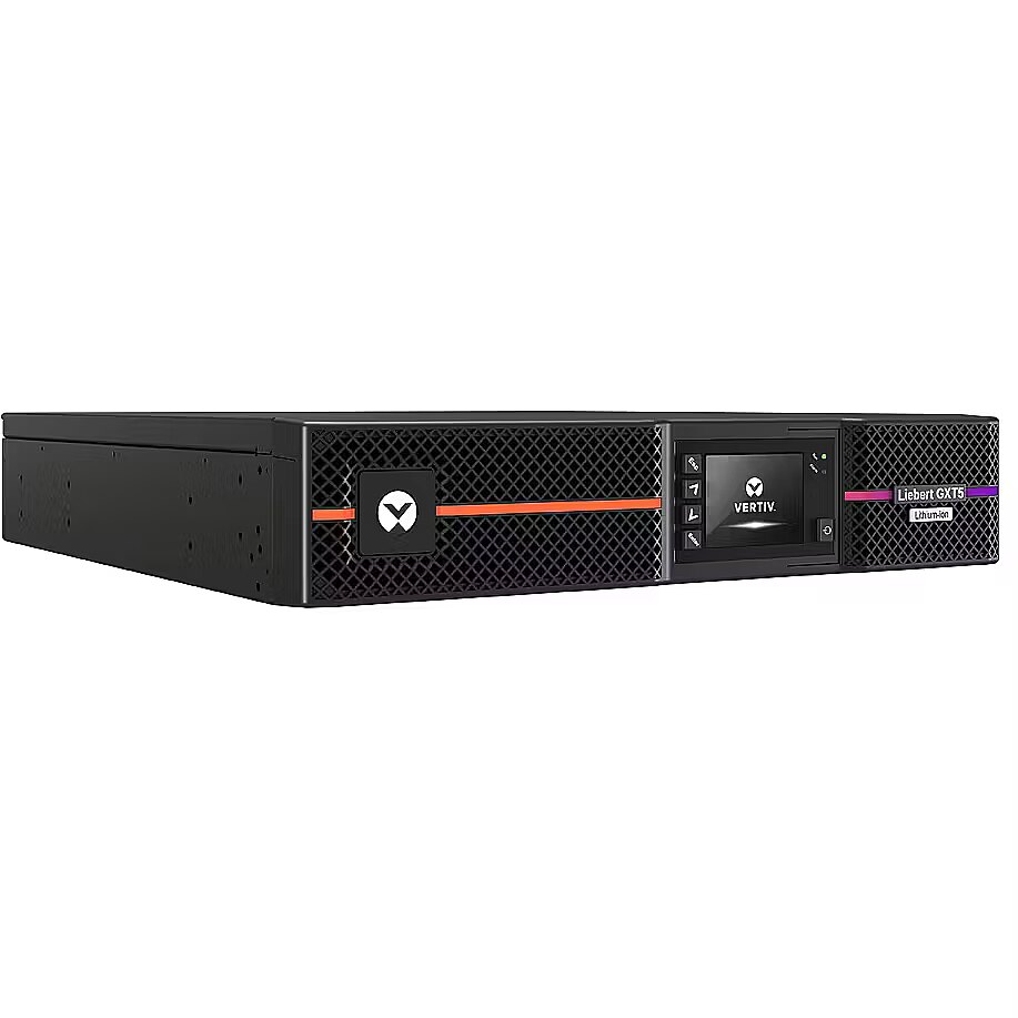 LongDesc - The Vertiv Liebert GXT5 Lithium-Ion UPS protects critical IT applications against outages and various power disturbances. This online UPS offers the highest level of power conditioning and battery backup in server rooms, network closets, and other edge or distributed IT locations. Lithium LFP batteries require fewer battery replacements and last up to 3x as long as traditional VRLA batteries reducing maintenance, labor, and replacement costs (resulting in the lowest TCO). Internal batteries offer industry-leading runtime (up to 14 minutes at full load (varies by model)) to protect critical equipment during an unexpected power loss. They offer better performance at higher temperatures, supports up to 10 times more discharge cycles, and delivers faster recharge times compared to VRLA batteries. Hot-swappable, user-replaceable batteries may increase the useable life of the UPS by allowing you to easily replace the batteries, if needed, without disrupting power to connected equipment.