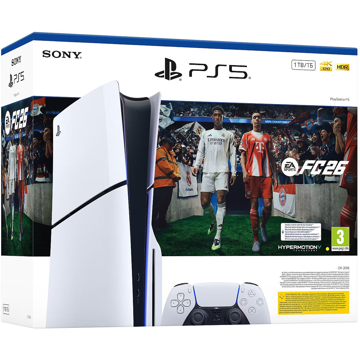 LongSummaryDescription - Sony Playstation 5 Standart FC26 Bundle. Platform: PlayStation 5, Product colour: Black, White, Internal memory: 16000 MB. Storage media: SSD, Internal storage capacity: 825 GB, Optical drive type: Blu-Ray/DVD. Ethernet LAN data rates: 10,100,1000 Mbit/s, Ethernet interface type: Gigabit Ethernet, Wi-Fi standards: 802.11a, 802.11b, 802.11g, Wi-Fi 4 (802.11n), Wi-Fi 5 (802.11ac), Wi-Fi 6 (802.11ax). HD type: 8K Ultra HD, Supported video modes: 2160p, 4320p. Power supply: 350 W