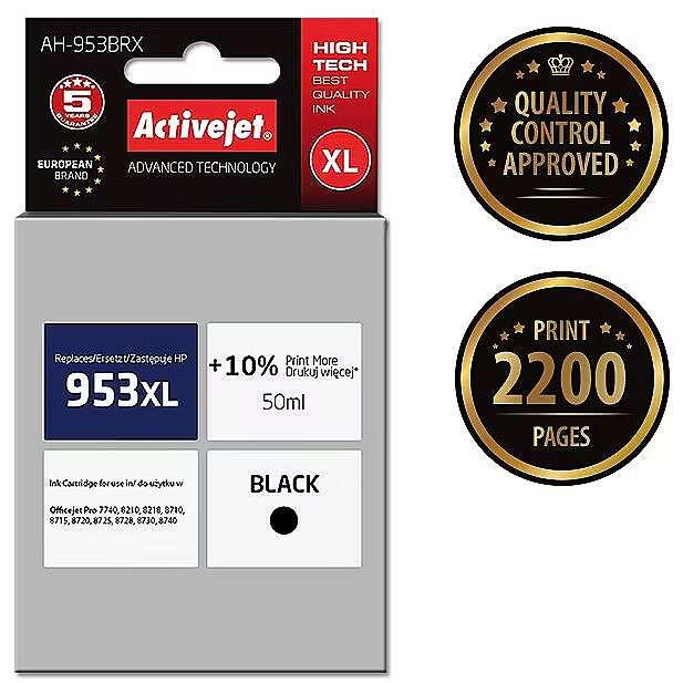 productName - Activejet AH-953BRX ink for HP printer; HP 953XL L0S70AE replacement; Premium; 50 ml; black