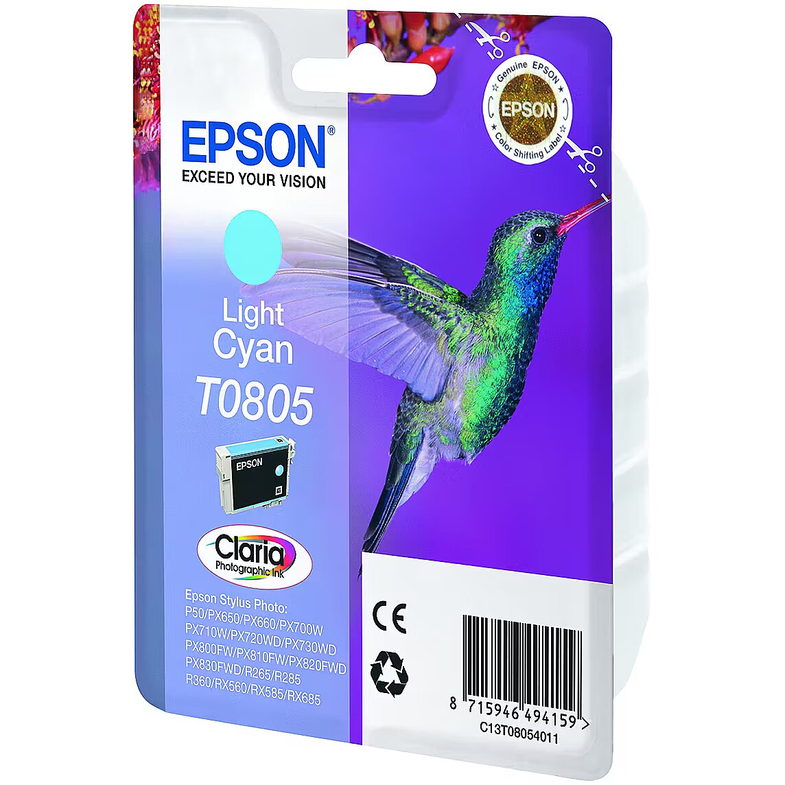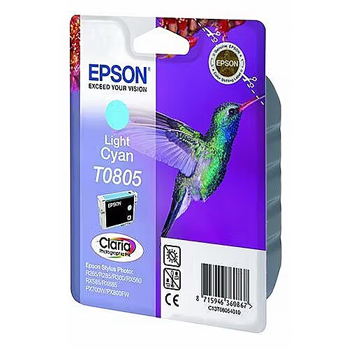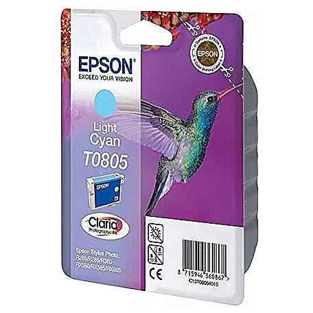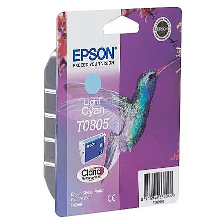 LongSummaryDescription - Epson Hummingbird Singlepack Light Cyan T0805 Claria Photographic Ink. Colour ink type: Pigment-based ink, Colour ink volume: 7.4 ml, Printing colours: Light Cyan, Quantity per pack: 1 pc(s)