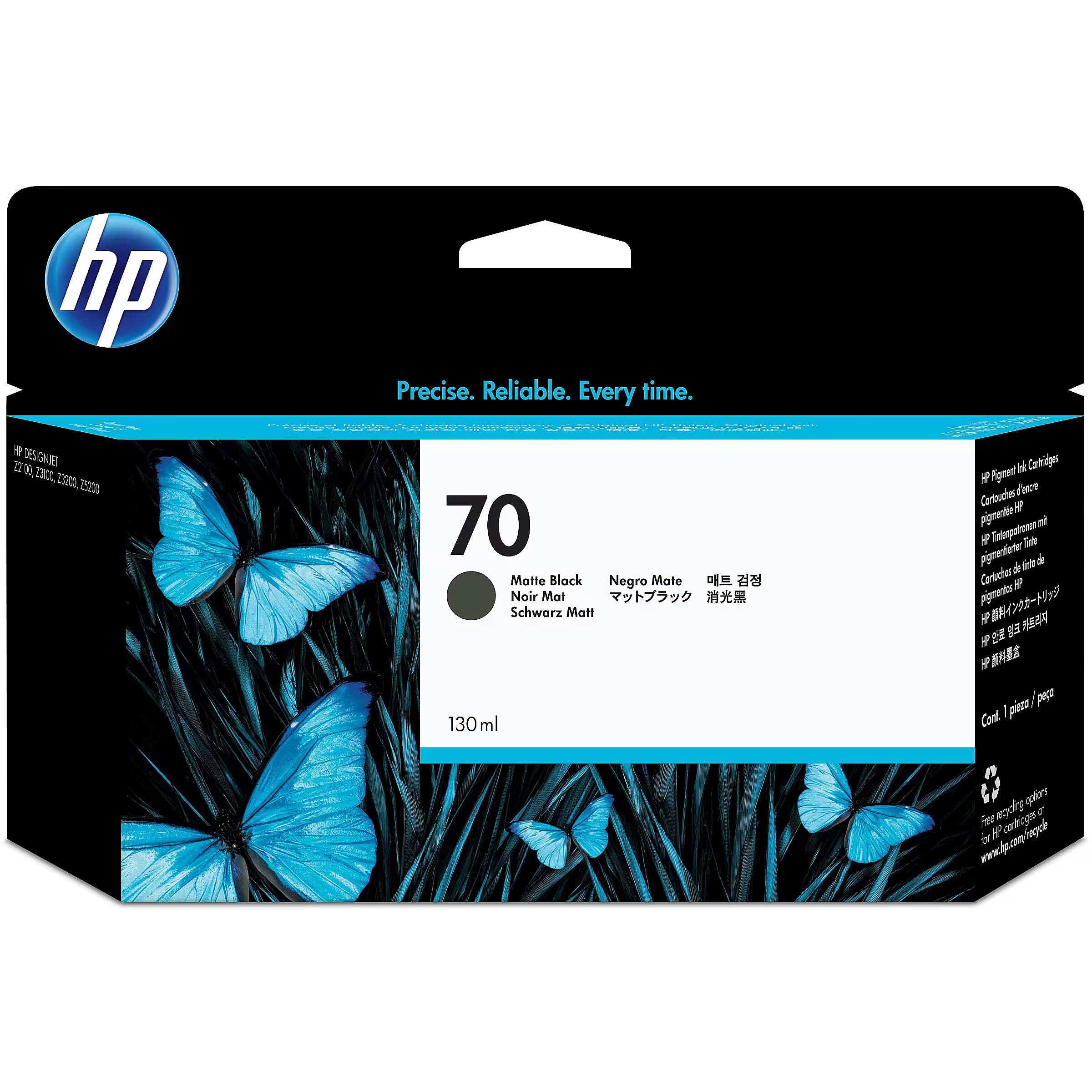 LongSummaryDescription - HP 70 130-ml Matte Black DesignJet Ink Cartridge. Colour ink type: Pigment-based ink, Black ink type: Pigment-based ink, Cartridge capacity: Standard Yield, Black ink volume: 130 ml, Printing colours: Matte black, Quantity per pack: 1 pc(s)