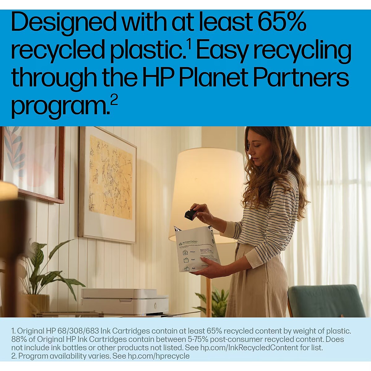 LongDesc - Ideal for low-volume home or small-business printing.Updated technology[1] makes quality and reliability the focus of these Original HP Ink Cartridges.[2] Designed with at least 65% recycled plastic content,[3] easily recycle used cartridges for free through the HP Planet Partners Program.[4]
