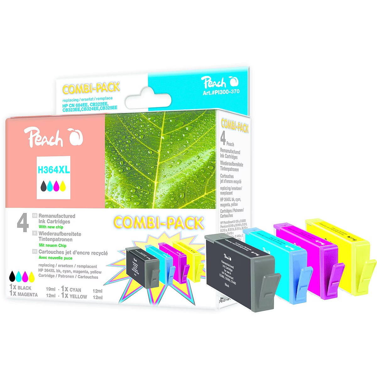 ShortSummaryDescription - Peach PI300-370, High (XL) Yield, Black, Cyan, Magenta, Yellow, Pigment-based ink, Dye-based ink, 4 pc(s), Multi pack