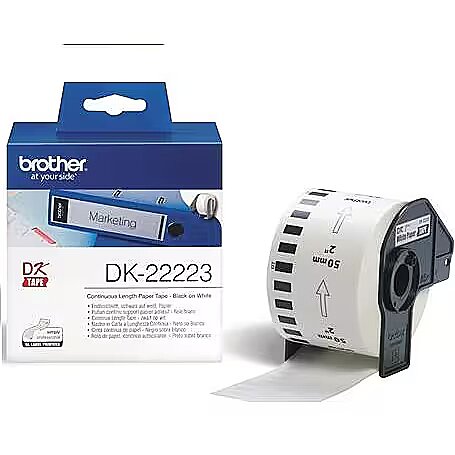MediumDescription EN - The Brother DK-22223 Black on White Continuous Paper Label Roll – 50mm - Tape is 30.48m long, 50mm wide.