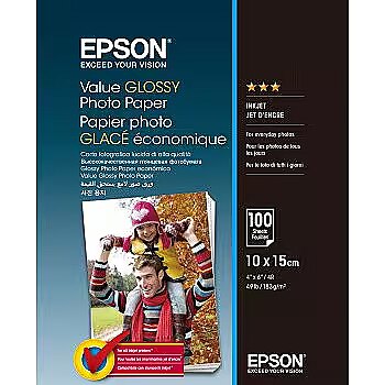 LongDesc - Everyday photo printingWhether it’s the latest holiday snap destined for the fridge, pictures for a school project, or clippings for a mood board, this value photo paper will deliver Epson quality every time.Printing is a partnershipThis photo paper has been specially developed to work with Epson's range of inks to deliver the best possible quality. It can also work with any brand of rear feed inkjet printer.Fit for purposeEpson provides a selection of photo papers to ensure there’s the right product at the right price for every situation. The new 183gsm three-star Value Glossy Photo Paper takes pride of place at the entry level of Epson’s range. For those looking for a professional or archival quality, Epson also provides the resin-coated 200gsm four-star Glossy Photo Paper, 255gsm five-star Premium Glossy Photo Paper, and finally the 300gsm five-star-plus Ultra Glossy Photo Paper.Choice and versatilityIdeal for an array of uses, the Value Glossy Photo Paper comes in two sizes; A4 and 10x15cm, and is available in varying pack sizes; 20, 50 or 100 sheets. The paper comes in a resealable bag, making it easy to keep it safe from moisture and light.