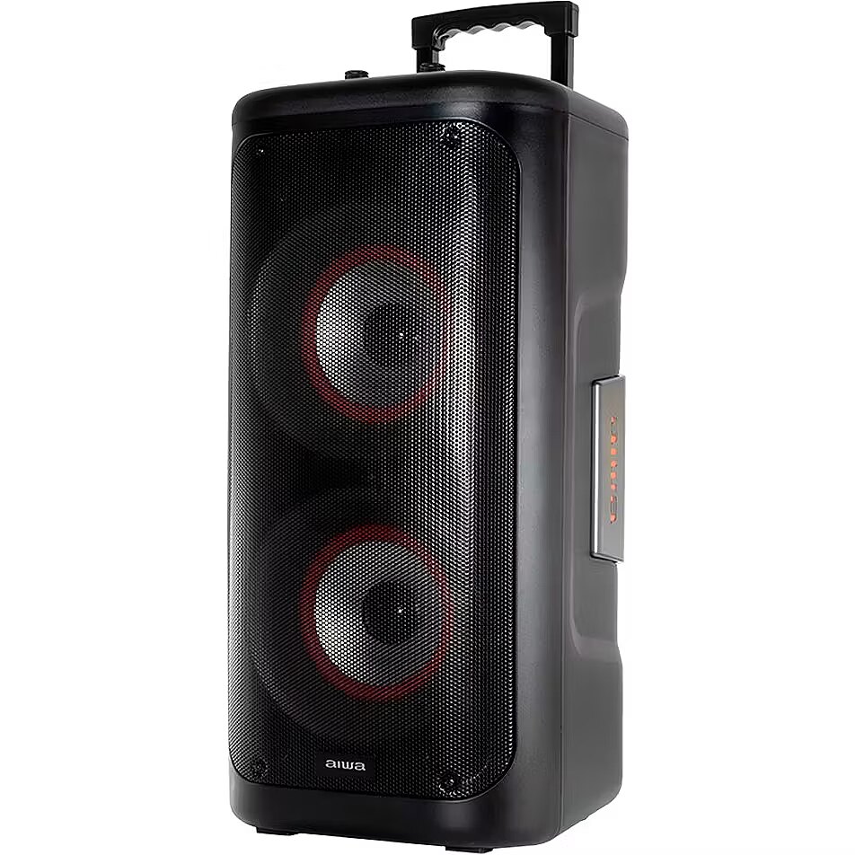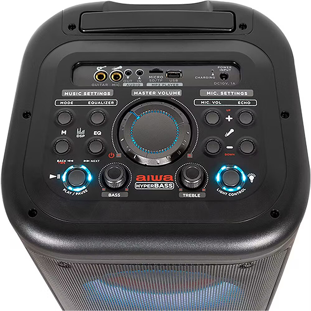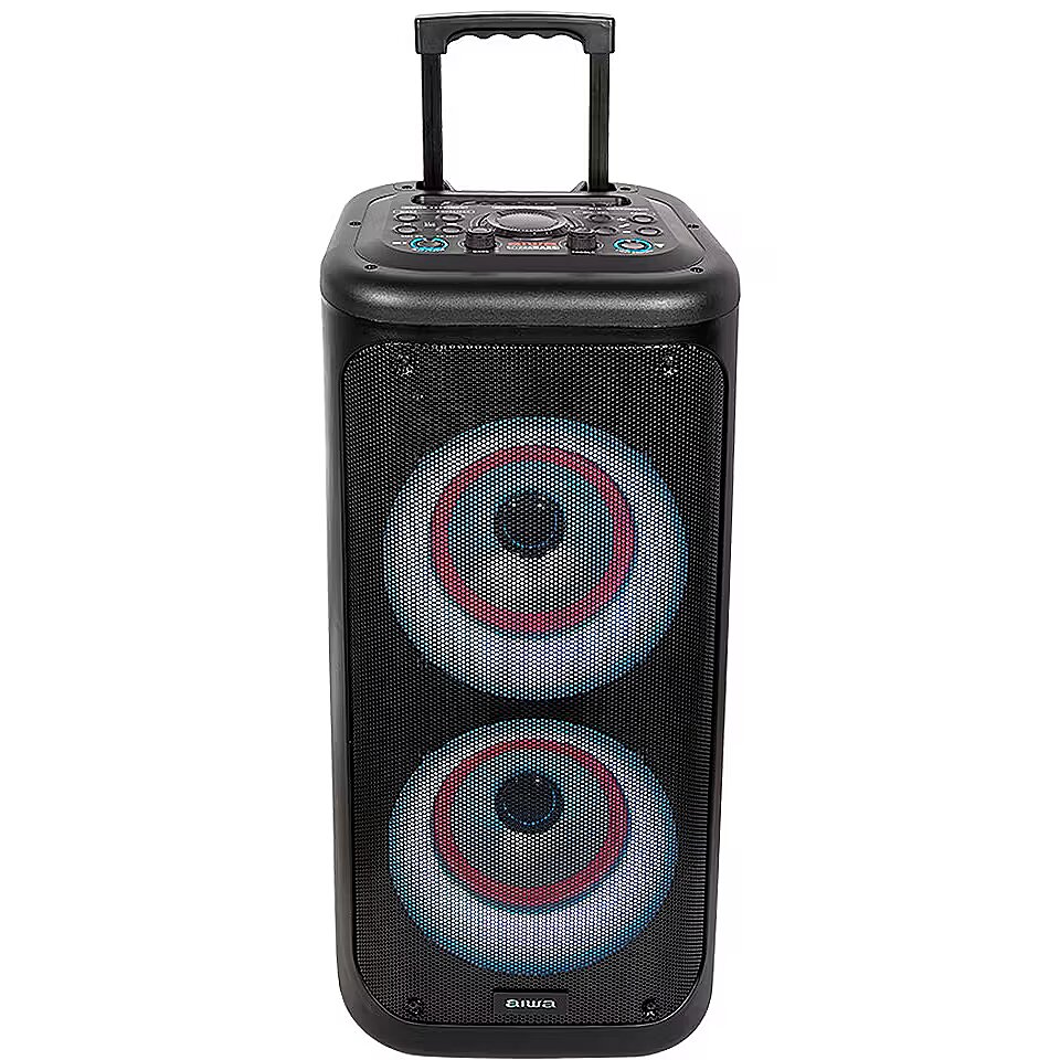 Description - Głośnik Power Audio AIWA KBTUS-450 Wyjście audio o dużej mocy: 40 W RMS / 350 W P.M.P.O. Podwójne 6,5-calowe przetworniki HyperBass zapewniające potężną akustykę. Głośnik wysokotonowy ze stopu metalu do odtwarzania dźwięku o wysokiej częstotliwości. Pasmo przenoszenia: 90 Hz - 20 kHz, sygnał sygnałowy > 80 dB. Odbiornik audio Bluetooth 5.0 z funkcją TWS. Zasięg bezprzewodowy: 10 m (30 stóp). Port USB i gniazdo Micro-SD (karty TF) do odtwarzania muzyki w formacie MP3. Wejście AUX stereo 3,5 mm do podłączenia urządzeń zewnętrznych. Wyjście AUX 3,5 mmstereo OUTPUT do przesyłania dźwięku do innego urządzenia (np. rejestratora). Wbudowane pozłacane gniazdo wejściowe gitarowe 6,3 mm. Wbudowane pozłacane gniazdo wejściowe mikrofonu 6,3 mm. Niezależna regulacja głośności mikrofonu do miksowania mikrofonu. Cyfrowe ECHO (regulowane) do karaoke z efektem Hall. Niezależne, precyzyjne pokrętła tonów niskich i wysokich. DSP z zaprogramowanym korektorem i radiem FM. 7-kolorowy system oświetlenia LED RGB Party Speaker z możliwością wyboru przez użytkownika. CZERWONE oświetlenie otoczenia (po obu stronach) dla poprawy atmosfery. Wbudowany wysuwany metalowy uchwyt i kółka do wózka ułatwiające przenoszenie. W zestawie bezprzewodowy pilot zdalnego sterowania. W zestawie przewodowy mikrofon dynamiczny.