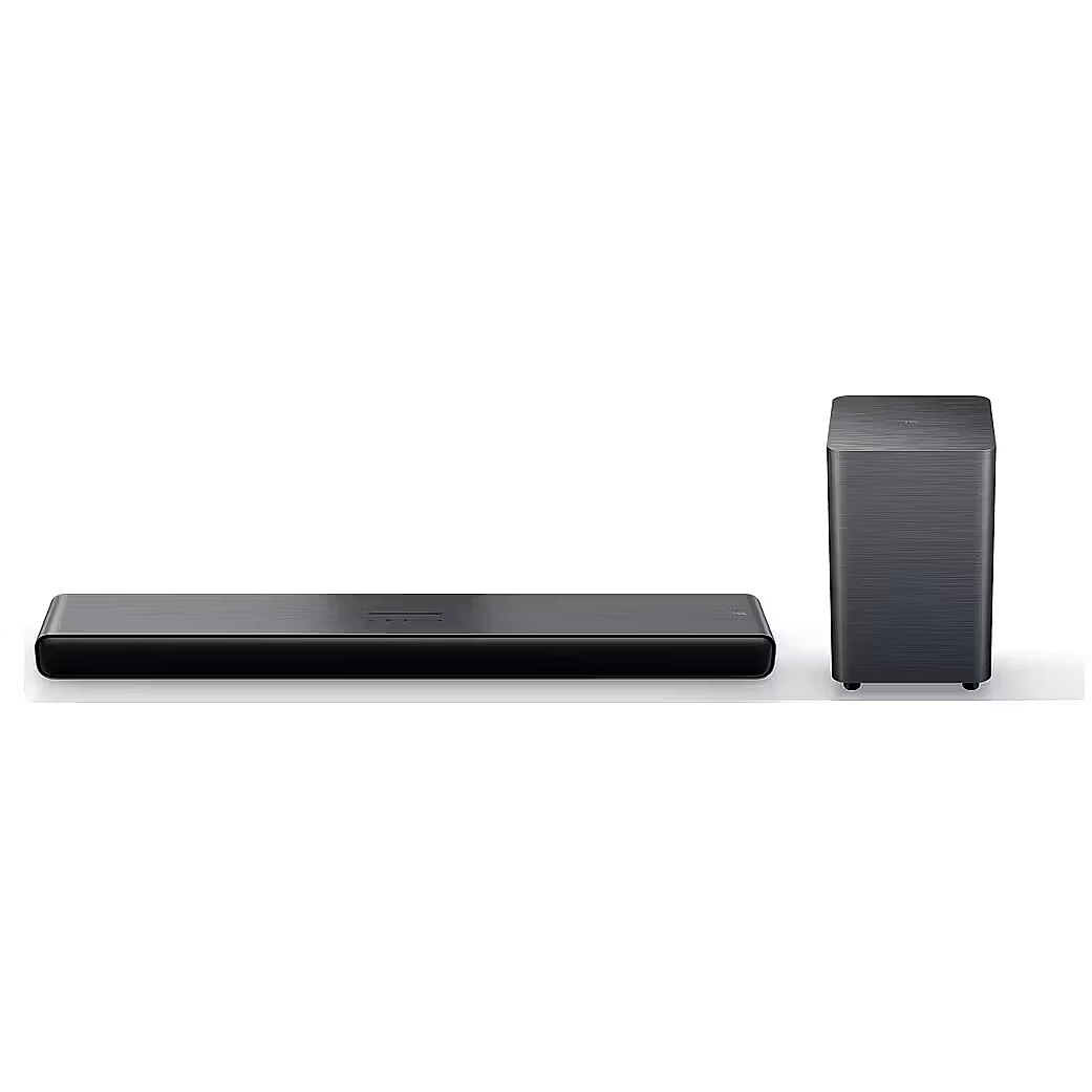 LongSummaryDescription - TCL S S55H Class 2.1 Channel Sound Bar with Dolby Atmos, Wireless Subwoofwer, and Bluetooth Music Streaming. Audio output channels: 2.1 channels, RMS rated power: 110 W, Audio decoders: DTS Virtual:X, DTS:X, Dolby Atmos, Dolby Audio, Dolby Digital, Dolby Digital Plus, Dolby MAT,.... Soundbar speaker RMS power: 110 W. Subwoofer type: Active subwoofer, Subwoofer connectivity: Wireless, Subwoofer RMS power: 70 W. Product colour: Titanium, Colour name: Dark titanium, Display type: LED. Connectivity technology: Wired & Wireless, Bluetooth codec: A2DP, AVRCP, SBC