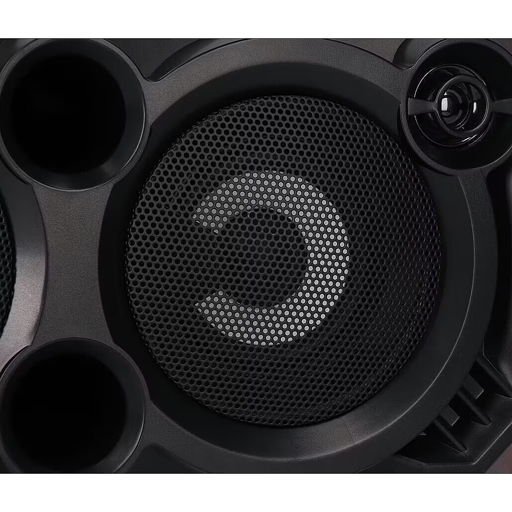 Other features - Bluetooth for music playback via audio streaming profile (A2DP) FM radio USB/SD player (up to 32 GB) Karaoke function Power: 3200W P.M.P.O. Bass reflex Treble and bass adjustment Multi-color LED backlight Built-in 2000 mAh 7.4 V battery Power supply: DC 5V 2A