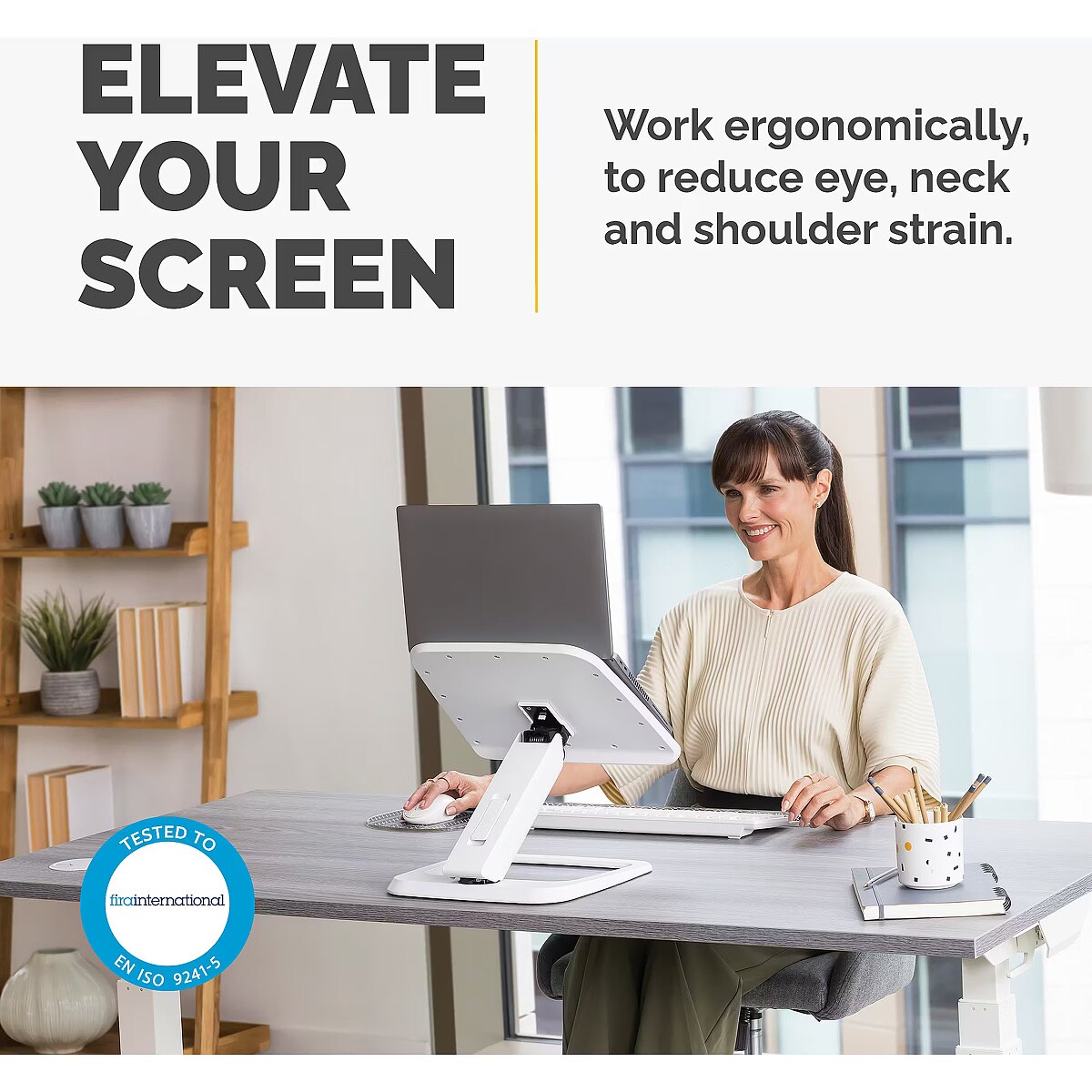 LongDesc - Elevate your work experience with the Hana LT laptop stand. Enjoy unparalleled ergonomic comfort with effortless finger touch infinite height adjustments. With its robust design, it securely holds laptops up to 19 inches and 4.5kg, providing stability and peace of mind. Effortlessly raise your laptop screen to eye level and reduce strain on your shoulders, neck, and eyes with simple adjustments, making work stress-free, and offers easy collaboration with colleagues. Keep your desk space clutter free with the laptop stands built-in cable management system. Elevate your workspace and comfort with the Hana LT laptop stand and experience a new level of productivity and well-being while you work. This laptop stand has been tested by FIRA International Ltd to comply with the ergonomic requirements set out in the European Health and Safety Legislation: EN ISO 9241-5 and is built to last with a 5-year extended warranty, and access to the best customer service to help with any queries you may have.