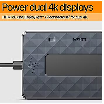 LongDesc - A Hub That Does it AllUnlock new possibilities with the HP Universal USB-C Multiport hub[1], now supporting any USB-C® compatible PC. 7 ports, 1 power and data passthrough cable, and many peripherals to plug and play however you like. It also supports dual 4K displays via HDMI 2.0 and DisplayPort™ 1.2. This hub is all you need to stay connected.